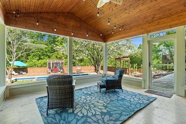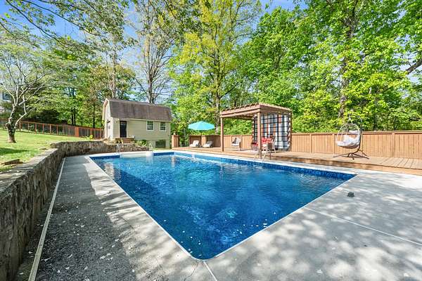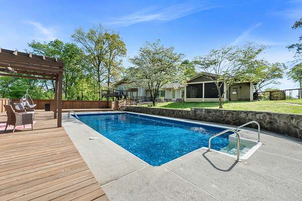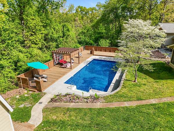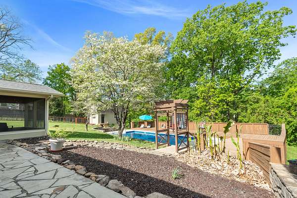 Tucked away on a generous 2.6 acre lot, 2024 Clematis Dr offers the kind of space and privacy that's hard to come by this close to town. With square footage for the whole family and a flexible layout, this 5-bedroom, 3-bath home gives you room to spread out, host, and actually enjoy where you live. Step out back and it only gets better. The backyard is built for gathering, with a beautiful screened-in porch that overlooks a true standout feature - a large in-ground pool with a brand new liner (summer 2024) and an expansive deck made for weekends with friends and family. A secluded firepit area surrounded by a garden of fruit trees, raspberry bushes and grape vines is the cherry on top. This is THE summer hangout spot. The fenced backyard provides plenty of room to roam, while the surrounding acreage adds an extra layer of privacy you don't often find. Inside, the main level flows easily between the kitchen, formal dining, and living spaces, while the lower-level den offers a separate hangout or media area. The primary suite brings its own spacious feel with a private balcony, plus a spacious bath featuring a jetted tub and walk-in shower. Two fireplaces add warmth and character, and the attached two-car garage keeps things practical. Out front, you've got a wide yard with semi-circle driveway as well as a welcoming covered porch. Out back, a detached workshop with loft space gives you even more flexibility for storage, hobbies, or projects. As if that wasn't enough, you'll also have access to nearby TVA land with public trails, fishing spots, and swimming areas - perfect for anyone who loves the outdoors. All of this, just minutes from Big Ridge Elementary, Greenway Farms, and Hwy 153. A rare mix of space, convenience, and a backyard setup that's ready to be enjoyed from day one. Book your private showing today!