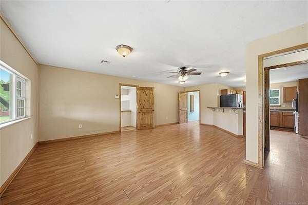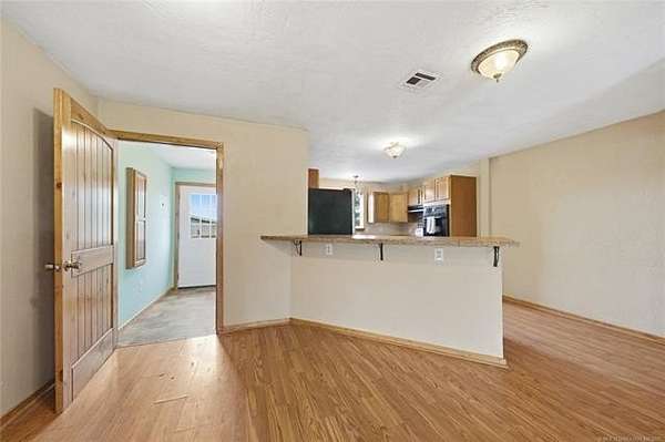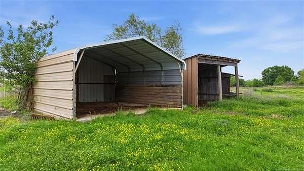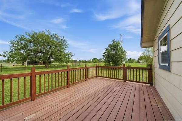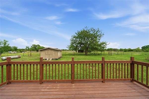 Set on 5 peaceful acres with a gated entry and three additional access gates, this versatile property is ideal for a hobby farm, livestock, or simply enjoying wide-open space. The land features mature trees, ample pasture, and functional outbuildings including a 12x15 loafing shed and an 18x20 pasture shed-perfect for storing a tractor, equipment, or supplies. The home offers an open-concept layout connecting the living area, kitchen, and dining nook, with a convenient bar seating area for casual dining or entertaining. There are four bedrooms, including a private master suite with a full bath and a spacious walk-in closet. Outdoor living is just as inviting, with a large covered front patio (34x8) and an 18x12 back deck-ideal for relaxing and enjoying the scenic surroundings. A 30x30 carport sits adjacent to the home, and an in-ground storm shelter is located just steps away for added peace of mind. Additional highlights include newer windows, blacktop road access all the way to the property, and a convenient location less than 10 minutes to the turnpike, 15 minutes to Sapulpa, and under 30 minutes to Tulsa. MOTIVATED SELLER... READY FOR YOUR OFFER...