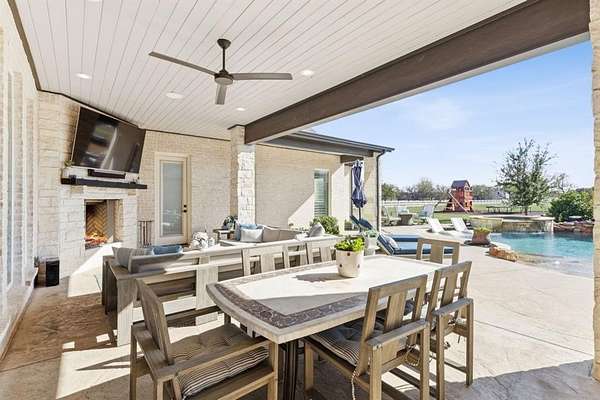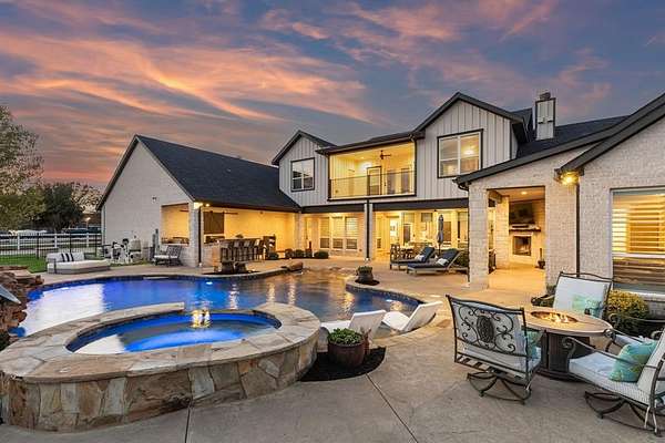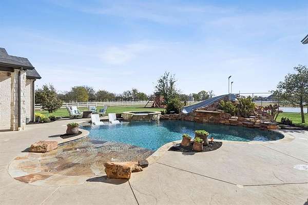 One-of-a-kind custom estate on 2.5 acres in Haslet with unmatched craftsmanship and luxury upgrades throughout! This stunning 5 bedroom, 5.1 bath home offers an exceptional layout, with every bedroom featuring its own en-suite bath and walk in closet. The gourmet kitchen is a true showpiece, complete with custom soft close cabinetry, stainless steel range with double ovens, built-in refrigerator, waterfall island, butler's pantries, and a nugget ice maker. The private primary retreat includes a sitting area, double sinks, oversized walk in shower, large soaking tub, and a custom designed closet. Additional highlights include a fully equipped media room with projector and screen, electric shades, whole home Control4 automation, indoor and outdoor surround sound, and a sealed-envelope foam insulated structure for exceptional energy efficiency. Step outside to your outdoor oasis, featuring a custom pool with slide and updated finish, hot tub, outdoor kitchen, gas fireplace, mosquito misting system, sports court, and beautifully landscaped grounds with full sprinkler system and drip lines. Property also includes an impressive 30x40 shop with spray foam insulation and electricity, a gated driveway, water well, new roof, new gutters, and more. With NO HOA and NO city taxes, this property truly offers it all. Too many upgrades to list!