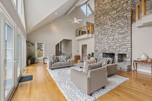 Set on 5.5+ scenic acres within the exclusive gated equestrian community of Lynnwood Downs, this one-of-a-kind custom home offers a rare opportunity to enjoy luxury living surrounded by some of the most breathtaking views in Williamson County. Designed for both everyday comfort and unforgettable entertaining, this remarkable residence blends architectural character, privacy, and lifestyle in an extraordinary setting. Residents enjoy premier community amenities including horse stables, a riding arena, clubhouse, pool, tennis courts, and playground. Inside, soaring ceilings, expansive windows, and hardwood and travertine floors create a dramatic yet welcoming atmosphere, all thoughtfully positioned to capture the stunning views. A striking three-story stacked stone fireplace serves as the centerpiece of the home, enjoyed from multiple levels. The gourmet kitchen features a large island, high-top bar seating, gas cooktop, granite countertops, Sub-Zero refrigerator, and flows seamlessly to the formal dining room and main living spaces. The loft-style primary suite offers a unique retreat, while additional flex rooms provide ideal accommodations for hosting guests, office space, or hobbies. Distinctive features include a wine cellar tasting room, cedar sauna, safe room, separate laundry and mudrooms, and a 3-car garage. Step outside to enjoy a private pool and a front deck designed to take in panoramic views that are simply unmatched. Whether relaxing in solitude or entertaining on a grand scale, this home offers a lifestyle few properties can match. With privacy, equestrian amenities, architectural distinction, and unforgettable scenery, this is a truly rare offering in one of Franklin’s most sought-after gated communities.