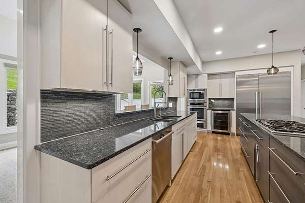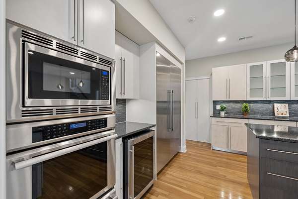 - Built-In Gas Oven, Built-In Gas Range, Dishwasher, Disposal, Freezer, Ice Maker, Microwave, Refrigerator, Stainless Steel Appliance(s)