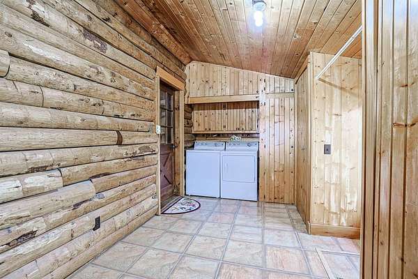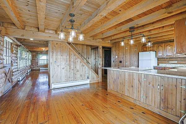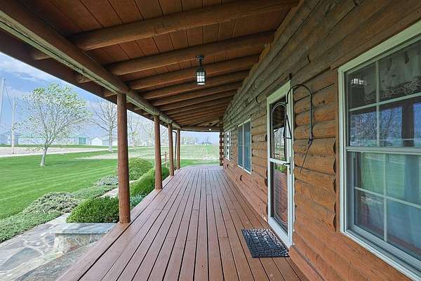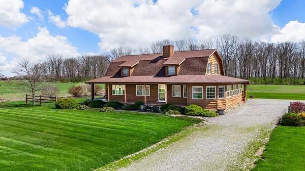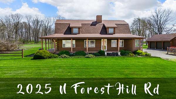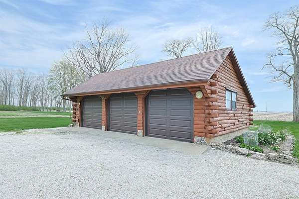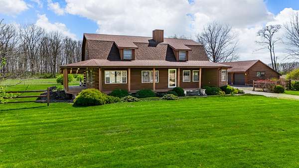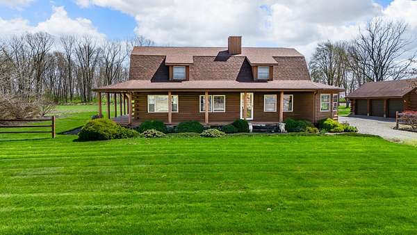 Once in a Lifetime! Log cabin home on 5.049 acres! Two separately deeded lots to this home. Log home is nestled on 1 acre & features 2,124 square feet of living space with 3 bedrooms, 2 full baths, & 3-car detached log garage. Garage measures 22x34 with 3 individual doors & openers. Adjacent (separately deeded) lot is 4.0491 acres & has 2 acres of woods to rear (see aerial photos). Absolutely beautiful, tranquil setting in Concord Township (no city taxes). The home is enhanced with a wrap-around covered porch to enjoy the scenic views of this hard-to-find country setting. The home features wood floors throughout most of home. Combined kitchen & breakfast room has granite countertop, pine wood cabinets, cooktop & pantry. All kitchen appliances stay. Off the breakfast room is a sun room/enclosed porch. Spacious living room has electric fireplace (was wood stove fireplace - flue still exists). Full bath on each level. Separate laundry room off kitchen. Washer & dryer stay. French doors off living room lead to a family room with large bay window. You'll love the outdoor living space in the covered wrap-around porch. New carpet in stairway & hallway 2025. Roof replaced on home & garage 2022. Granite countertop 2025. Vinyl replacement windows 2006. Water softener 2019. Well pressure pump 2019. Garage doors & openers 2022. Wrap-around porch & walkway added 2006. Country atmosphere yet close to city conveniences. Occupancy at closing.