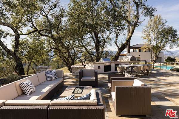 Redwood Hill RetreatA breathtaking new Sonoma County estate beckons from its lofty hilltop, promising a life of ease in harmony with nature. To ease your options for owning this paradise the seller is offering Seller Financing. Glide up the long driveway, past gnarled old olive trees, where graceful oaks frame 360-degree views across just over 57 acres. The scent of chaparral mingles with birdsong, gracing your mornings with tranquility.Step through the monolithic entry, past rugged limestone walls, and into a home designed to embrace the healing vistas that surround it. Walls of glass open wide, merging indoor and outdoor living with mature gardens and sun-soaked covered galleries. Designed to capture both the breeze and the sunlight, the home radiates warmth. In the great room, a towering stone fireplace rises two stories to lofty cedar-clad ceilings, dappled with light from clerestory windows and elegant designer fixtures. Smooth French Oak floors lie invitingly beneath your bare feet.The covered outdoor living spaces are as welcoming as those inside. Sink into deep couches with a glass of Sonoma's finest vintage, chosen from your glass wine cellar, as you take in the epic sunsets. The cozy family room offers a choice between the warmth of a toasty fireplace and the breathtaking views beyond its walls of windows. No expense was spared in the sublime kitchen, where two matching islandsone for prep, one for gatheringprovide both function and beauty. A full wall of glass opens here as well, ensuring seamless access to the outdoors. Gaggenau appliances will inspire the chef in you, while clean Quartzite counters contrast elegantly with the warmth of custom cabinetry. An office/media room offers a retreat when you need to reconnect with the world.The serene primary suite is a sanctuary of luxury. Stone walls, a stone-faced fireplace, and doors to a private patio connect you to the landscape. Indulge in the vast en suite bath, where a deep soaking tub and a striking Nero Marquina marble shower capture views of distant hills.Three additional bedroom suites welcome guests to your private oasis. Entertain in style. A large entertainment terracecomplete with a covered pool pavilion with a bar, TV, and fireplaceoverlooks the far end of the soulful limestone pool. A full guest house with kitchen, living room, and bedroom suite sits above, with views of forever. The outdoor kitchen, with a built-in barbecue and pizza oven, sets the stage for unforgettable celebrations. Nearby, the rhythmic click of bocce balls fills the air. Rinse off the dusty trails in the open-air shower, then relax in the bubbling hot tub, soothing muscles well-used from hiking, riding, or golfing nearby. A Savant Smart Home System ensures effortless living.The estate invites your visionperhaps a garden, a vineyard, or equestrian stables. The motor court faces a three-car garage, with an extra 2 car garage beneath the guest house, with ample parking for a true gala.This is Wine Country. Surrounding towns boast exquisite restaurants and wineries, the birthplace of farm-to-table cuisine. Entertainment aboundsart galleries, theaters, live music, craft cocktail bars, and cozy pubs create a vibrant social scene. Sonoma County spans redwood forests, the stunning Northern California Pacific coast, rolling mountains, and more than 50 parks, where trails lead to blissful discoveries.Here, you unplug and unwind. A perfect second home, just a short distance from San Francisco and its airports, this is the California Dream realized. Once here, you may never want to leave.