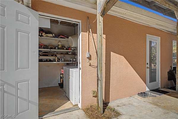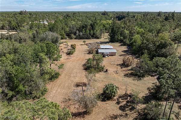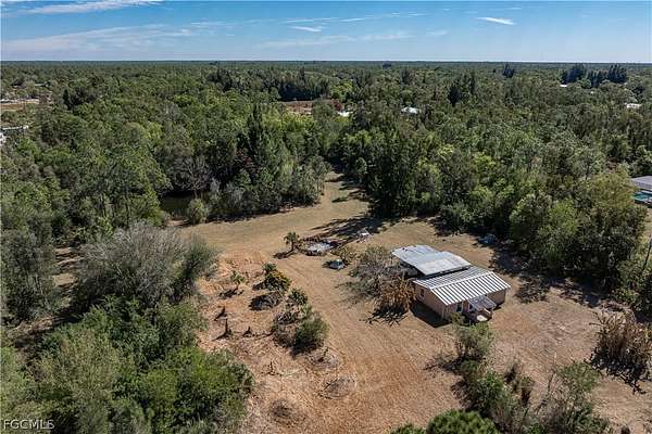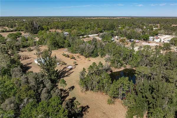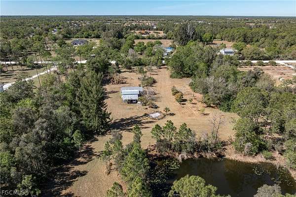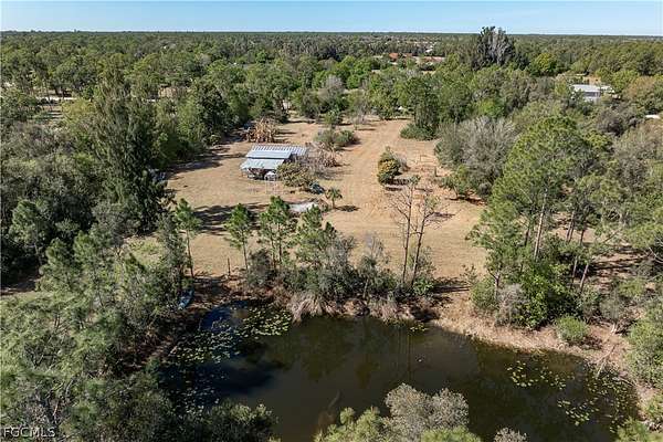 PRIVATE 5-ACRE NORTH FORT MYERS HOMESTEAD WITH POND, CLEARED LAND & ENDLESS POTENTIAL - Set along a quiet road in North Fort Myers, this rare FIVE-ACRE PROPERTY offers privacy, flexibility, and a true connection to the land. With no subdivision restrictions and surrounded by other large acreage homes, the setting delivers a country lifestyle that's increasingly hard to find-yet still within reach of downtown Ft Myers. Reach I-75, shopping, dining and medical facilities with ease. The land itself is the defining feature. A thoughtful balance of cleared open space and natural wooded areas creates multiple zones for recreation, gardening, future expansion, or a custom country estate. A private pond tucked into the landscape serves as a peaceful focal point, framed by mature trees and natural edges that invite quiet mornings, wildlife watching, and unhurried afternoons outdoors. Scattered throughout the property are established fruit trees, including avocado, banana, papaya, pomelo, guava, and Suriname cherry. The existing 2 bed/1 bath home is comfortably functional. A metal roof adds durability, while the interior offers simple, light-filled living spaces well-suited for everyday use or future personalization. Two exterior-access storage rooms and a separate utility/laundry room enhance functionality without sacrificing interior comfort. A carport and expansive open areas around the home further emphasize the flexibility of the property, with ample room for outdoor hobbies, recreational vehicles, and the kind of space that supports an active, land-focused lifestyle. Acreage allows for horses, with several neighboring properties having horses and stables. Nature lovers will appreciate proximity to Pop Ash Creek Preserve, known for hiking, bird watching, and peaceful hiking and horseback trails, along with nearby Nalle Grade Park-making outdoor recreation part of daily life rather than a destination drive. This property honors its current lifestyle while leaving the door wide open for what comes next. Enjoy it as a quiet getaway, a nature-focused homestead, or the foundation for something entirely your own. Make an appointment today and experience the space, privacy, and possibilities this unique North Fort Myers acreage provides.