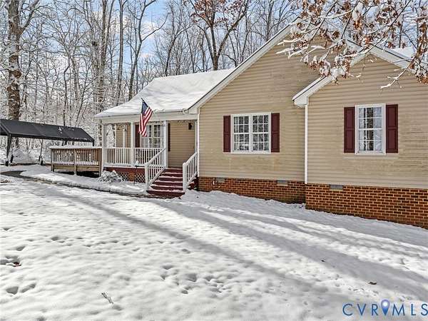 Welcome to your own peaceful retreat in the heart of beautiful Powhatan, Virginia. Set on 2 private acres in a quiet, established neighborhood, this warm and inviting 3-bedroom, 2-bath home offers the perfect balance of rural charm and modern convenience. As you step inside, you're greeted by a bright and open living space highlighted by vaulted ceilings that instantly make the room feel expansive and welcoming-an ideal setting for both everyday living and entertaining. The eat-in kitchen provides a cozy spot for morning coffee or casual meals, with easy flow that keeps everyone connected. The home's thoughtful layout continues into the primary suite, where you'll find a relaxing jetted tub and beautifully designed herringbone tile floors, creating a spa-like retreat tucked right into your own home. Outdoor living is truly a highlight here. A spacious screened-in porch invites you to enjoy quiet mornings or peaceful evenings overlooking your acreage, rain or shine. Step out onto the expansive deck, perfect for grilling, gathering, or simply unwinding while you soak in the views of your wide-open surroundings. With 2 acres of land and no restrictions, the possibilities are endless-gardening, play spaces, small livestock, or simply room to breathe. Bring your chickens and embrace the homestead feel while still enjoying the comforts of nearby amenities. You're just 5 minutes from the nostalgic Village of Powhatan and only 2 minutes from the local grocery store, making it easy to enjoy country living without sacrificing everyday convenience. And for added peace of mind, the home is equipped with a whole-home Generac generator, ensuring you stay comfortable and powered even during unexpected outages. This property offers space, charm, security, and potential at every turn. Come discover why this is the one you've been dreaming of.