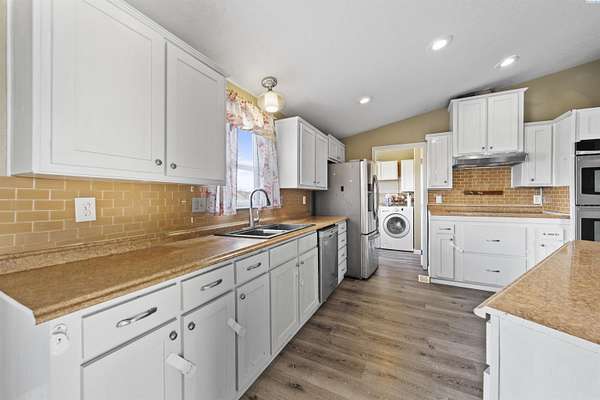 Est $2,529/moMLS# 288865 Welcome Home to this well maintained 4 bedroom, 2 bath, 2008 manufactured home sitting on a generous 5 acres lot with a 864 sqft shop, perfect for those who want more space and a touch of country living. It's an ideal setting for an urban farm with a large garden area, many fruit trees like Asian pears, apples, cherries, plums and peaches. Inside you'll find laminate flooring throughout the house, a cozy kitchen and a fresh coat of paint inside and out. Contact me or your favorite Realtor for a private tour.