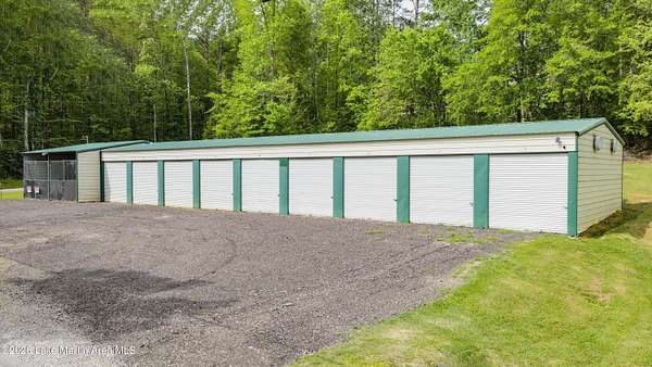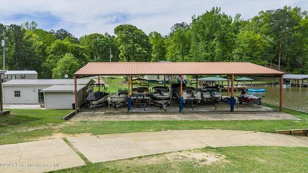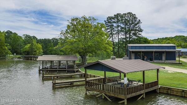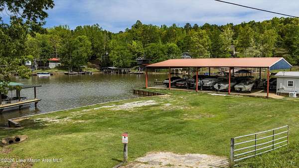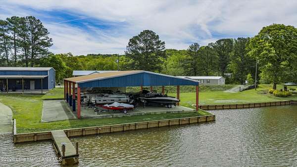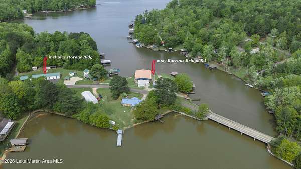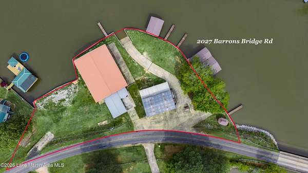 Unique Opportunity! INCOME GENERATING BOAT/PWC/OTHER storage facility featuring 3 PARCELS, Waterfront & off-water w/550+/- feet of shoreline featuring two boat ramps for in-water access, yielding approximately $35,000+/- per year. The property comprises three parcels with two addresses, 2027 and 1997 Barron's Bridge, offering expansive water views, multiple covered and open rental dock points with expansion potential. Ideal for a private compound, boutique glamping retreat, lake club, or expanded marina operations. Potential additional amenities and services include fuel services, boat repair, boat and jet ski rentals, and amenities for boaters without lake residences, such as parking, launching, grilling, swimming, showers etc. or residential development. See Fact Sheet Next FACT SHEET: Garage boat storage: * 8 enclosed storage spaces (10'x30') plus 1 partially enclosed space fitting for an RV, all with electrical & overhead lights controlled by each unit. * All units currently rented for a fee of $150 a month on a 6-month lease. * Open-air storage and Enclosed Shop/store: *4000+- sq feet open air covered, approximately 2850++-sq ft. other (appx 1350 sqft shipstore/ appx 1500 sqft metal shop bldg) * 20 open air covered spaces for watercraft storage- each space is 10'X30'. * 14 of the 16 are currently rented for $100/month on a 6- month lease. "*Covered Wet Slips: * 3 covered wet slips *All units are currently rented. Fee of $200 a month on a 6-month lease. * Piers * 4 piers with dedicated electrical * 2 of the piers are rented for a total of 4 spots (left and right), seasonal and expect to be fully rented for $150 a month on a month-to- month basis. * Workshop: 1500 sq. feet. Multi-level building with single full bathroom attached. Also includes small motor lift, large compressor, & gas can storage. * Commercial Building/Store: 1350 sq. feet. Includes new mini-split AC system, new doors/windows, and 4 door glass commercial beverage cooler. * Fuel storage tanks with pump: enclosed by cinder block wall. Tanks hold 2000 gallons. Currently not operational. * 2 concrete private boat ramps * 1 large gazebo for picnic tables and 1 smaller gazebo. * Wireless RING security system installed as well as full WIFI with external/outdoor router for connectivity anywhere on the property. IMPROVEMENTS/OTHER: * Remodeled bathroom in 2022. New sea wall in December 2025. * Remodeled Marina store in 2022 including AC, windows, beverage cooler, and doors. * Painted in 2021 and signage installed. New floating dock in 2023. * New crushed asphalt parking was installed in 2025. * Drainage systems around property * New well pump was installed in 2025. * Upgraded electrical includes outlets at all piers and new panel board installed for future expansion (gas pumps or RV electrical) completed in 2022. * Gas tanks/gas pumps are not operational and have been decommissioned. ***See Document Section for Deed, plats of each parcel, Covenants and Restrictions and Addendum, Environmental reports. Insurance coverage currently around $ 10,500 per yr. Currently with Southern Insurance Underwriters. Water depth is appx 6 to 8 ft at full pool depending on location.