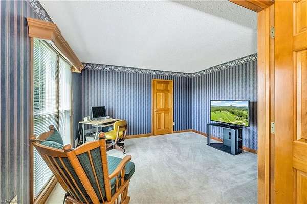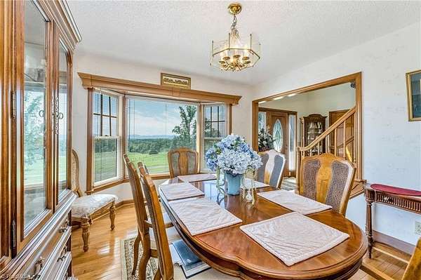This impressive brick home offers 3 bedrooms and 3.5 bathrooms, along with a bonus room and a formal sitting room that can also serve as a home office, blending elegance and comfort with resort-style outdoor living -- all with sweeping mountain views. Inside, you'll find a grand two-story great room with a striking brick fireplace. The open layout includes inviting living areas, a formal dining space, and a finished basement with a game room, den, and extra flex space. Step outside to your private retreat featuring an in-ground pool surrounded by generous deck and patio areas. The charming brick pool house adds both functionality and character with a screened porch and convenient quarter bath. Additional structure on the property was once a rental duplex and could be restored for guest space, rental income, or a studio. A beautifully maintained 1,100-foot paved driveway leads you in. With its breathtaking views and peaceful setting, this home feels like being on vacation every day.