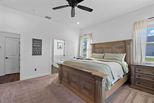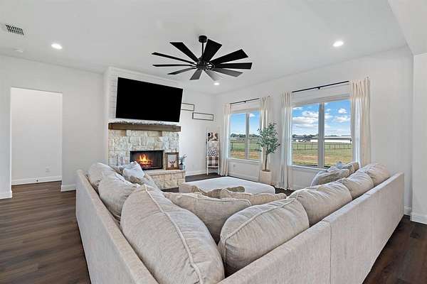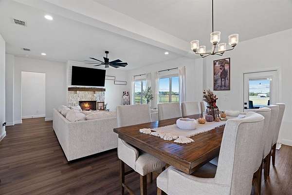 $10,000 CLOSING COST ASSISTANCE WITH ACCEPTABLE OFFER........Modern Farmhouse on 2 Acres - No HOA!!! Welcome to your dream modern farmhouse, offering over 2,600 sq. ft. of thoughtfully designed living space on 2 beautiful acres with no HOA--bring your horses, cattle, or simply enjoy the open space and freedom this property provides. Inside, you'll find a stunning open-concept layout that seamlessly blends the living, dining, and kitchen areas--perfect for both entertaining and everyday living. The kitchen is a showstopper, featuring a farmhouse sink, double ovens, and an oversized 11x6 pantry with a window for natural light. Each of the three spacious bedrooms includes its own ensuite bath, offering comfort and privacy for family or guests. Two flex rooms provide endless possibilities--create a home office, gym, playroom, or media space to suit your lifestyle. The epic laundry room is as functional as it is beautiful, complete with a mud closet, folding space, and elegant cabinetry designed to make daily chores a breeze. With a pre-inspection already completed, this home is truly move-in ready. Don't miss your chance to own a slice of modern country paradise--where style, space, and serenity meet.
