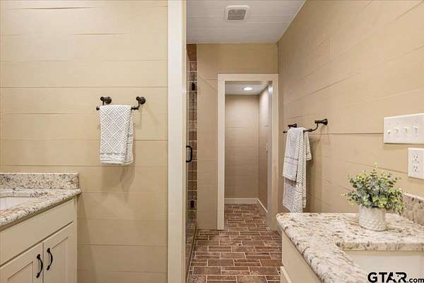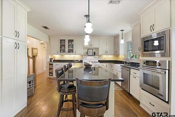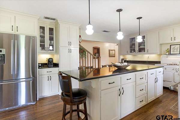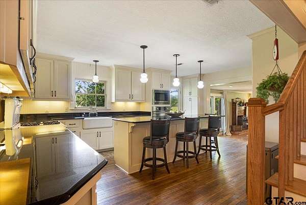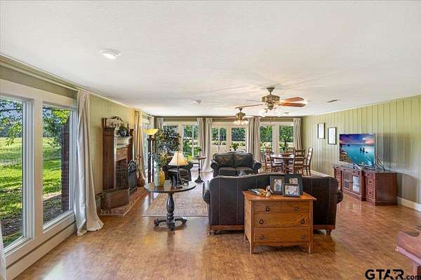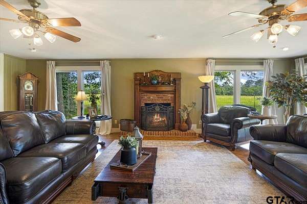 !*1 YEAR HOME WARRANTY, of buyers choice, FOR PEACE OF MIND*! Welcome to your dream farmhouse nestled on just under 2 peaceful acres in the heart of Lindale. This beautifully updated 4,125 sqft home blends timeless charm with modern comfort, offering plenty of room to live, work, and entertain. With 5 spacious bedrooms, 3.5 bathrooms, and 2 inviting living rooms, there's more than enough space for family gatherings, holidays, or quiet evenings at home. You'll love the flexibility of a primary suite on both the lower and upper levels, plus a dedicated office downstairs, perfect for working from home or managing a busy household. The large kitchen is a showstopper, combining function with farmhouse flair, complete with a vintage stove that adds a unique touch of class and history. Step outside to enjoy a 30x30 shop with a 20x30 lean-to, ideal for projects, storage, or even a home business setup. If you're looking for the perfect mix of space, character, and country living with room to grow and breathe. This Lindale farmhouse checks every box.