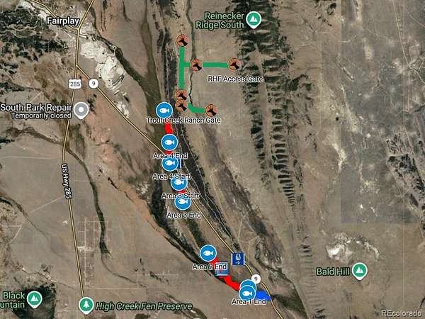From Fairplay (Hwy 285), take CO 9 S. for approximately 7 miles. Turn left at the Redhill Forest subdivision entrance. Left onto Redhill Rd. Property will be on the right.