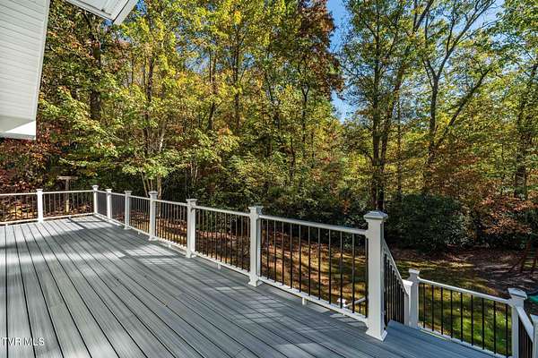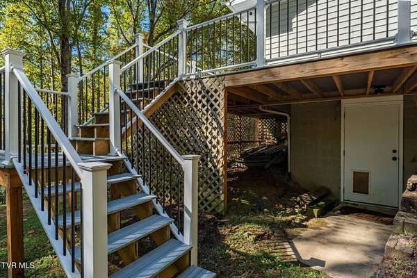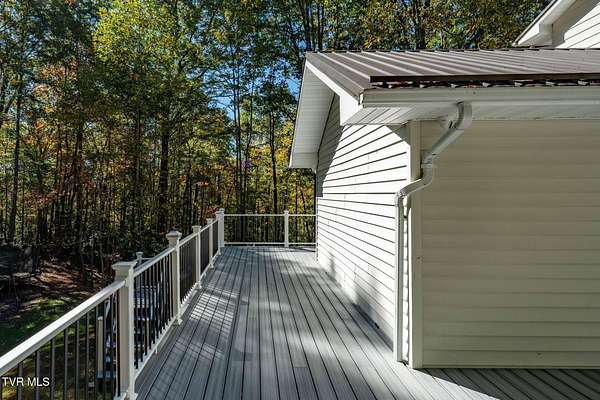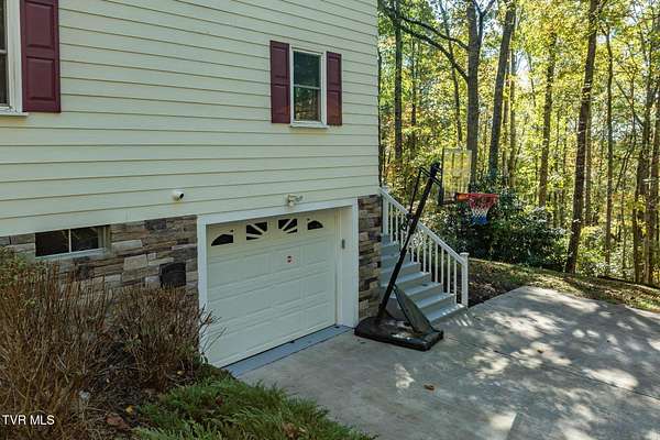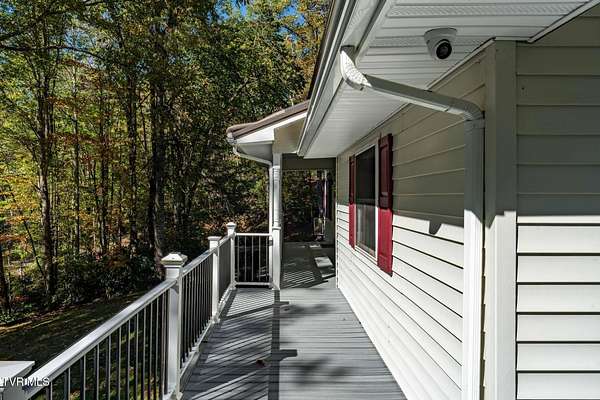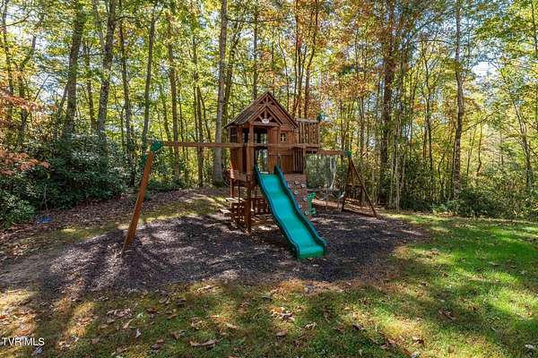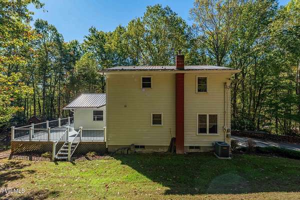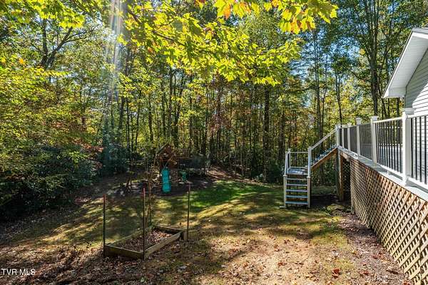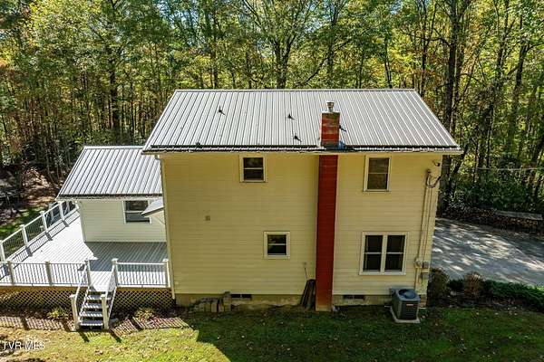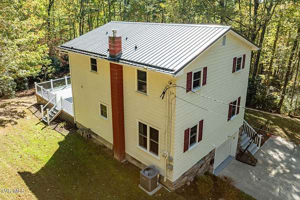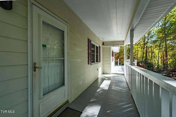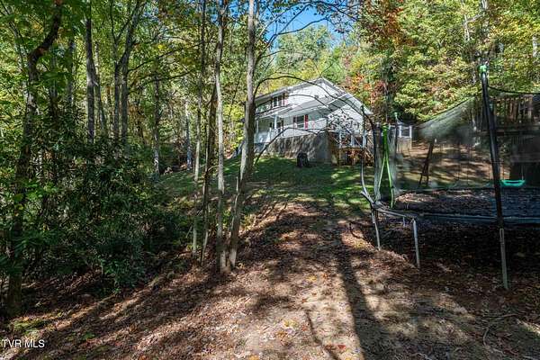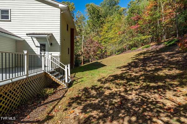 SECLUDED MOUNTAIN RETREAT ON 4.37 ACRES IN EAST TENNESSEE! Tucked away among mature trees in the heart of the East Tennessee mountains, this beautiful two-story home offers the perfect blend of privacy, comfort, and rustic charm. Sitting on 4.37 acres, the property features a peaceful setting with yard space for a playground and a private trail that winds through the wooded landscape - ideal for nature walks or spotting the abundant wildlife that frequent the area. A covered front porch wraps around to the side, crafted with durable Trex decking - perfect for relaxing and enjoying the mountain air. Inside, the home welcomes you with warm wood details and great living space. The dining area includes a bar with seating and flows into a galley kitchen features oak cabinetry, a pantry, and a tongue-and-groove backsplash. Just off the kitchen is a laundry room with outside access for added convenience. A cozy sitting room or office space includes a half bath, while the large living room showcases vaulted ceilings with hemlock beams, adding natural character and charm. Upstairs, you'll find two bedrooms with a full bath, plus a private master suite complete with a tile shower, large vanity, and walk-in closet. The unfinished basement includes a one-car garage, storage room, and a wood stove for supplemental heat. Additional upgrades include a whole-house water filtration system with UV light and wiring for a whole-house generator - ideal for mountain living. Located just a short drive to Damascus, VA and scenic Watauga Lake, this property offers the perfect balance of seclusion and accessibility - a true mountain retreat ready to be customized to your lifestyle. Additional 2.44 acres available for an additional price. Buyer/buyer's agent to verify all info.