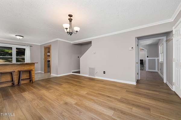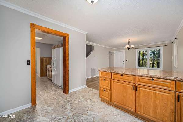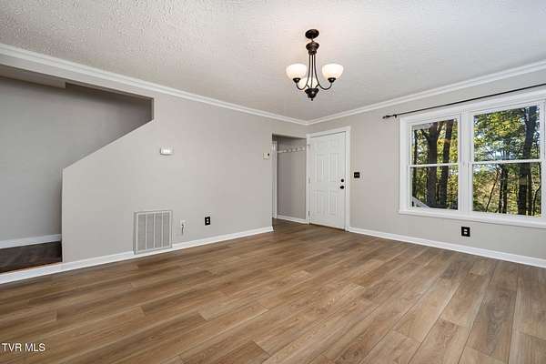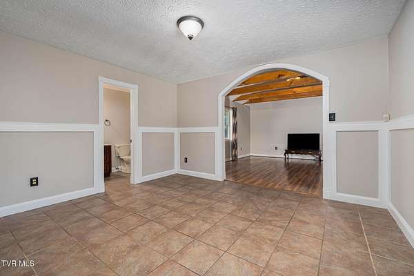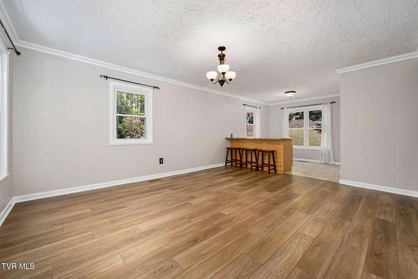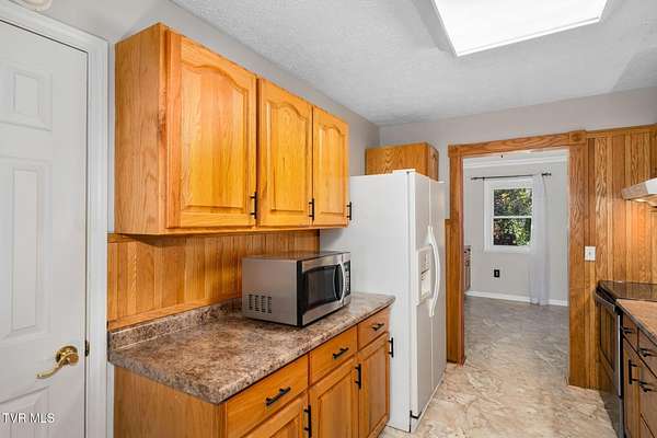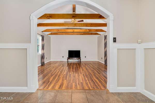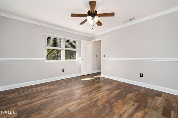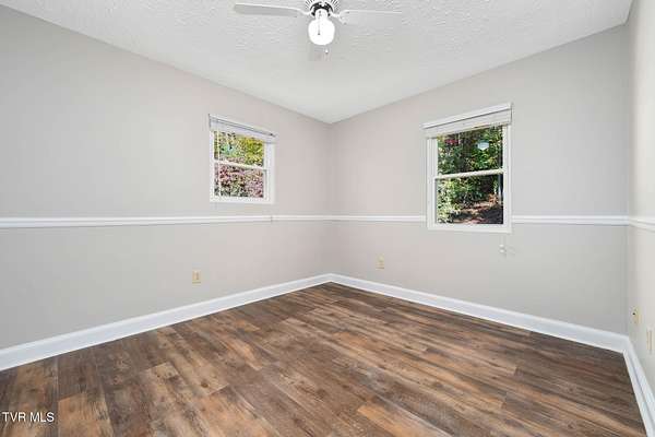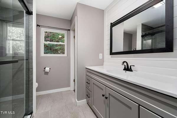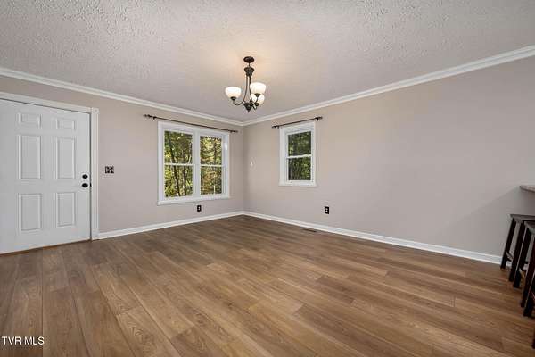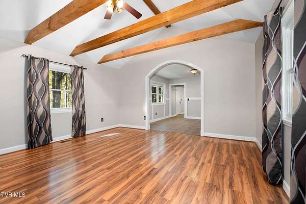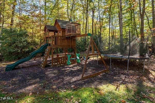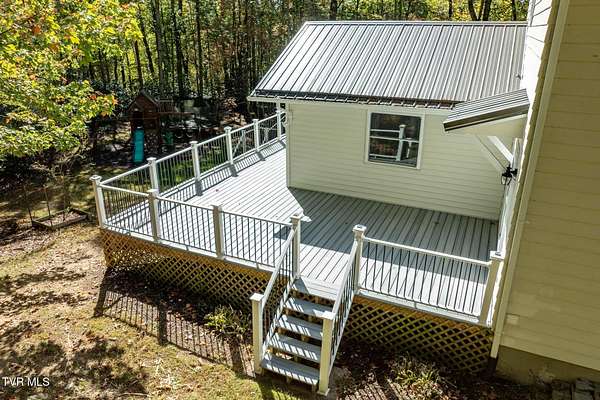SECLUDED MOUNTAIN RETREAT ON 4.37 ACRES IN EAST TENNESSEE! Tucked away among mature trees in the heart of the East Tennessee mountains, this beautiful two-story home offers the perfect blend of privacy, comfort, and rustic charm. Sitting on 4.37 acres, the property features a peaceful setting with yard space for a playground and a private trail that winds through the wooded landscape - ideal for nature walks or spotting the abundant wildlife that frequent the area. A covered front porch wraps around to the side, crafted with durable Trex decking - perfect for relaxing and enjoying the mountain air. Inside, the home welcomes you with warm wood details and great living space. The dining area includes a bar with seating and flows into a galley kitchen features oak cabinetry, a pantry, and a tongue-and-groove backsplash. Just off the kitchen is a laundry room with outside access for added convenience. A cozy sitting room or office space includes a half bath, while the large living room showcases vaulted ceilings with hemlock beams, adding natural character and charm. Upstairs, you'll find two bedrooms with a full bath, plus a private master suite complete with a tile shower, large vanity, and walk-in closet. The unfinished basement includes a one-car garage, storage room, and a wood stove for supplemental heat. Additional upgrades include a whole-house water filtration system with UV light and wiring for a whole-house generator - ideal for mountain living. Located just a short drive to Damascus, VA and scenic Watauga Lake, this property offers the perfect balance of seclusion and accessibility - a true mountain retreat ready to be customized to your lifestyle. Additional 2.44 acres available for an additional price. Buyer/buyer's agent to verify all info.