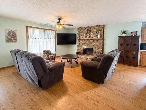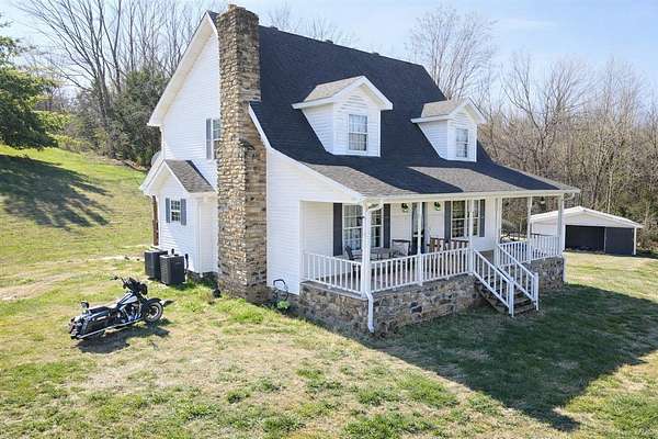 Country Living at it’s finest on 5 Acres! Looking for space, privacy, and charm? This beautiful 4-Bedroom, 2 Bath two-story home checks every box! Property Highlights: Spacious layout with room for the whole family, Cozy stone fireplace for those perfect fall evenings, Full basement with garage door entry, Inviting front & back porches - perfect for relaxing or entertaining, Gorgeous stone porch matching the fireplace chimney extending the entire 2-stories adds timeless curb appeal, and Walk-in Closets. Outdoor Features: Additional Detached 2-Car Garage (24x24), Situated on 5 scenic acres, Peaceful country setting, and Partially fenced. Recent Upgrades: New Central Heat & Air System, Updated lighting & ceiling fans throughout, Stylish Butcher Block kitchen island, and Added security system for peace of mind. Don’t miss your chance to own this slice of country paradise! Call today to schedule your private showing!