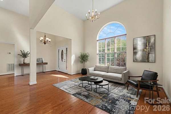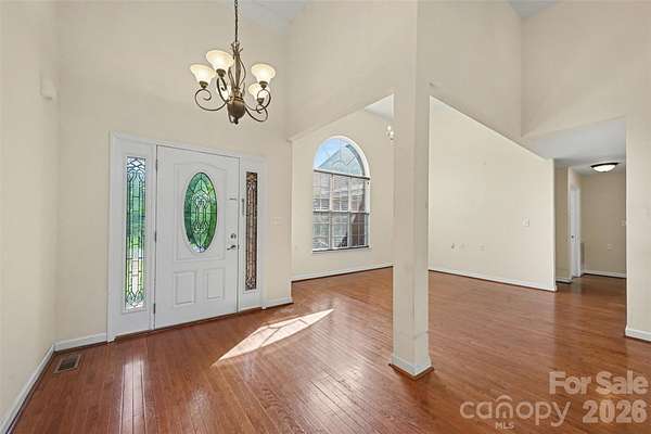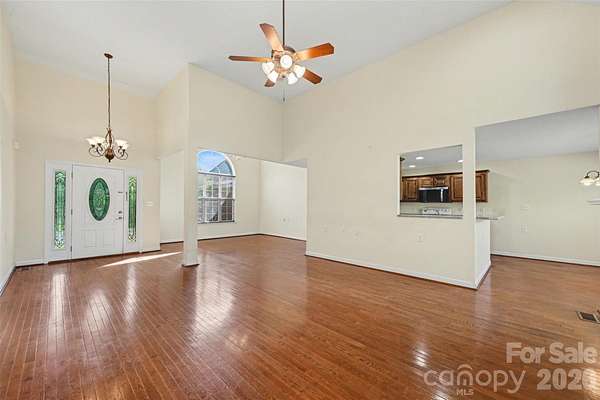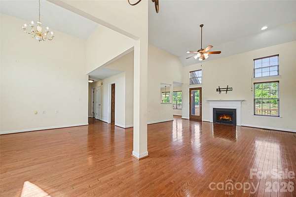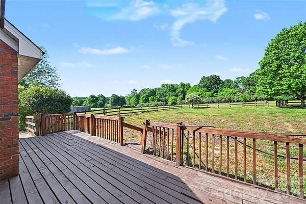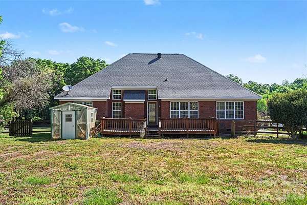 Welcome to this all brick home situated on over 2 acres in the Saye Brook II community with no HOA. This home offers the space and privacy that are hard to find at this price point. Step inside to soaring vaulted ceilings and an abundance of natural light pouring through arched windows. The open living area features beautiful hardwood floors throughout, a cozy fireplace, and a layout designed for comfortable everyday living and entertaining. The kitchen offers generous cabinet and counter space with a functional layout that flows into the dining area. The primary suite includes a tray ceiling, a private bath with a jetted soaking tub, dual vanities, and a separate shower. Additional bedrooms are generously sized with great closet space. Step outside to your expansive fully fenced backyard with a wood deck, perfect for relaxing or hosting. A greenhouse and mature trees complete the outdoor space. The attached two car garage and circular driveway provide plenty of parking. All of this on over 2 acres with room to spread out, garden, or simply enjoy the open sky. Conveniently located with easy access to Monroe, Matthews, and Charlotte.