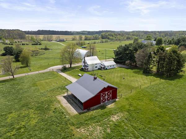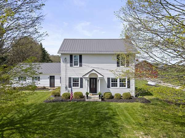 Step into timeless charm with this beautifully maintained 1890 farmhouse set on 8.2 scenic acres in Utica, Ohio. Offering 4 spacious bedrooms and 1.5 bathrooms, this home blends historic character with modern-day comforts. A welcoming covered porch invites you to relax and enjoy the peaceful countryside setting, while inside you'll find warm, inviting living spaces filled with natural light. The added metal roof, gutters, and gutter guards in 2023 will give you a piece of mind during those rainstorms. Outside, the property truly shines with its thoughtfully designed and beautifully landscaped grounds, providing both curb appeal and room to roam. A 2-car garage offers convenience, and the whole-house generator ensures peace of mind year-round. The impressive 50 x 48 barn, complete with water and electric, is perfect for hobbies, livestock, storage, workshop space, and the 14' eave height is ideal for your RV. Whether you're looking for a hobby farm, a private retreat, or a place to spread out and enjoy country living, this property offers the perfect balance of space, functionality, and rural charm, all just a short drive from town amenities.