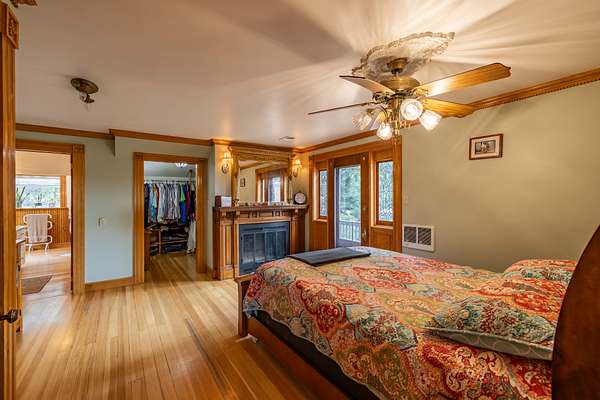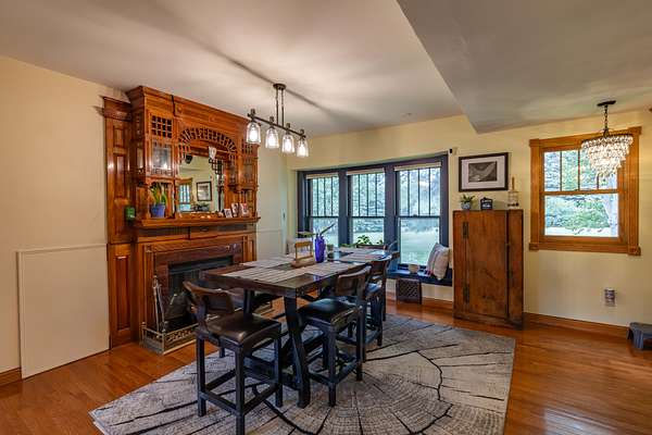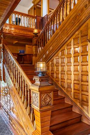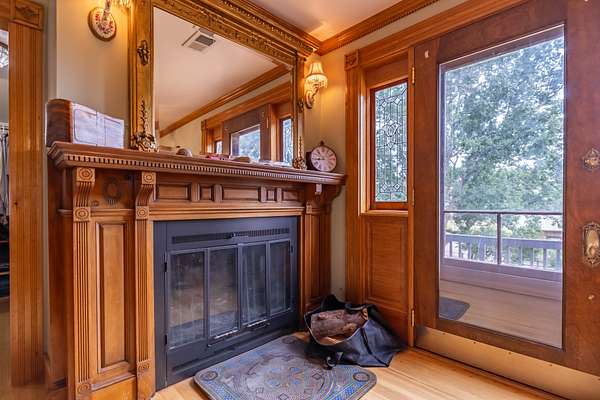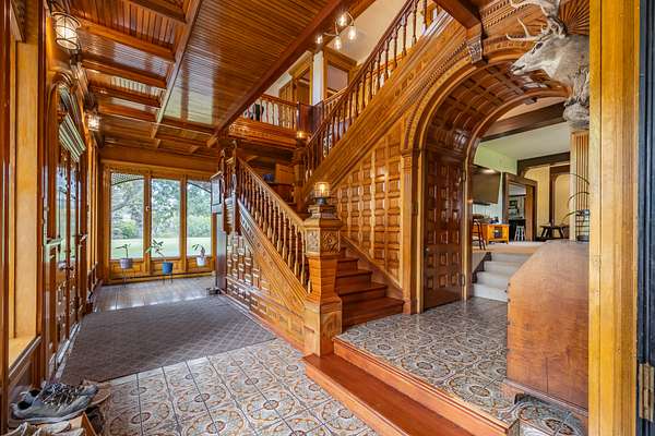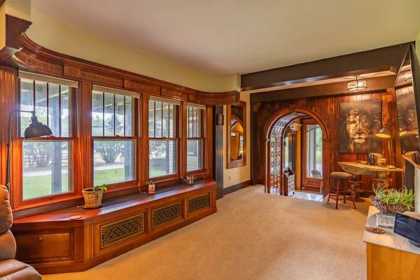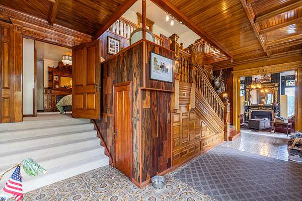 The property includes artistic and historical significance including very exclusive stained glass artwork, and exquisite old-world woodworking craftsmanship.