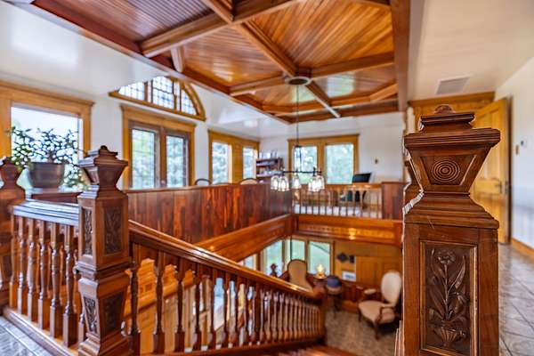 The home is very spacious, and comfortable glimpse of craftsmanship and artistic values with stained-glass, exquisite lighting, hand-crafted details and old world workmanship rarely seen anymore. The mezzanine, the sitting room, the hand crafted wood-working, the numerous fireplaces and living spaces, to the kitchen and dining area for gatherings, including lots of laughter and memories to be made..., this home is a truly intriguing place to be! The investment grade artistic upgrades bring an intriguing and intrinsic value to the property that must be seen to be appreciated.