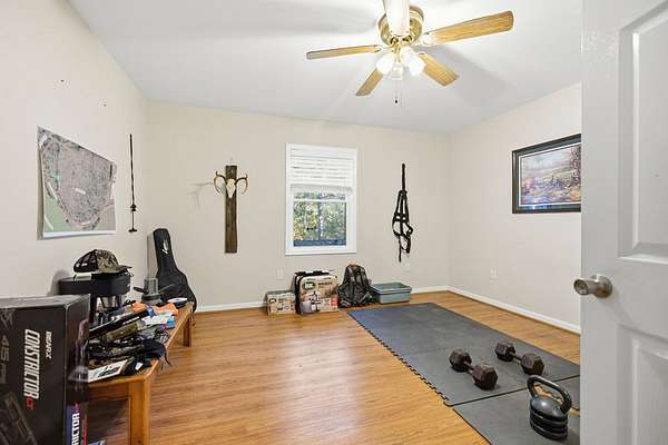 - Bath In Primary Bedroom, Breakfast Area, Ceiling Fans, Jetted Tub, Main Level Primary, Separate Shower, Smooth Ceilings, Walk In Closets, Window Treatments