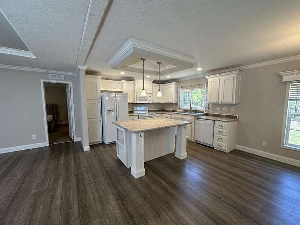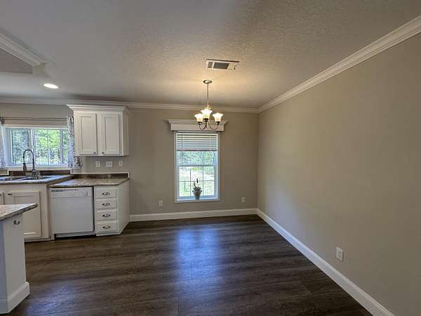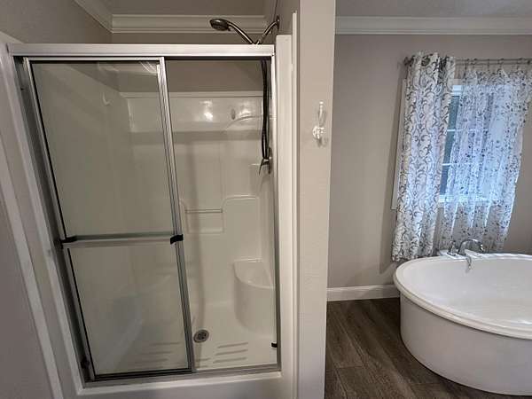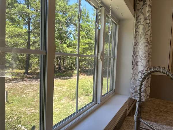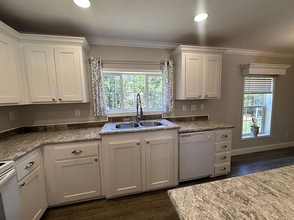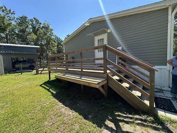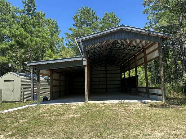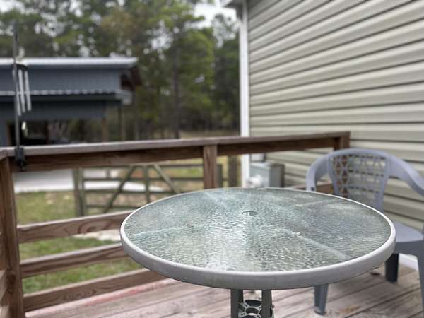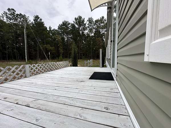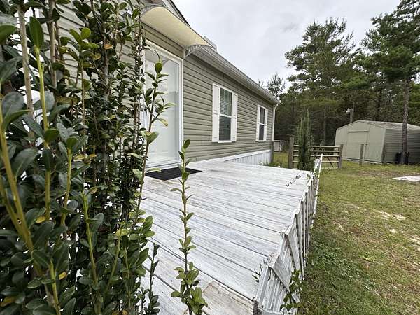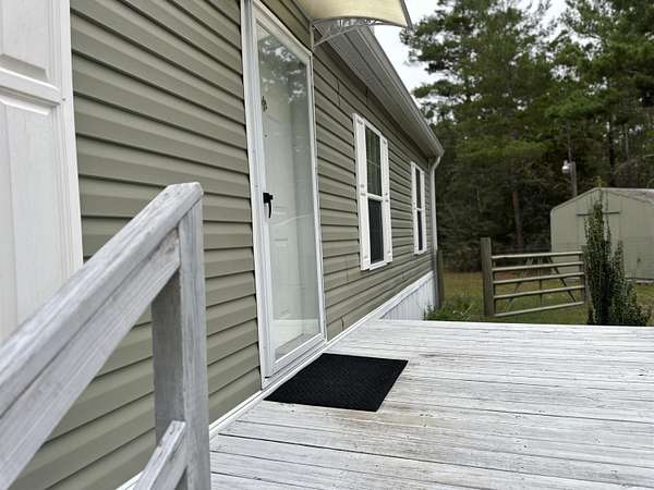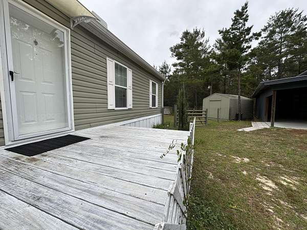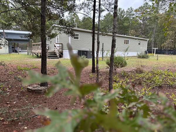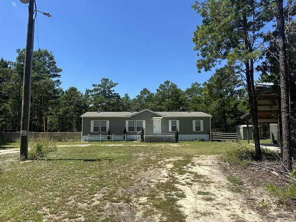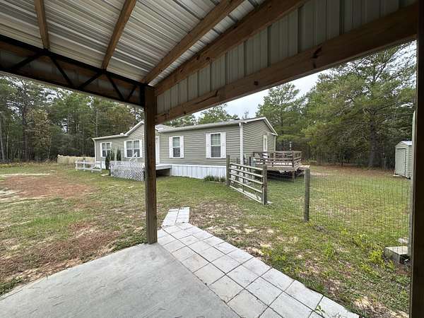 Welcome to 'Deer Run Acres,' a beautifully maintained 2021 mobile home nestled on 4.9 mostly cleared acres adorned with seasonal blooms and natural beauty. This spacious home showcases elegant crown molding, tray ceilings, luxury vinyl plank flooring, and a relaxing primary bath complete with a soaking tub and separate walk-in shower. Wander along the owner-created nature trail, surrounded by colorful flowers and shaded trees - a peaceful path where you can pause to read, reflect, or simply enjoy the quiet sounds of nature. The property also includes a 14-foot-high covered carport with room for up to four vehicles, a boat, or an RV, plus a dedicated electrical hookup for motorhome living - perfect for outdoor enthusiasts or those seeking a balance of comfort & countryside charm.