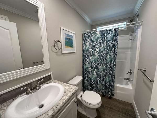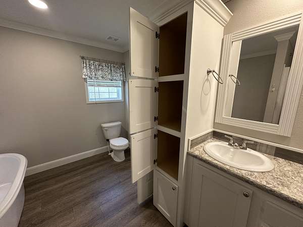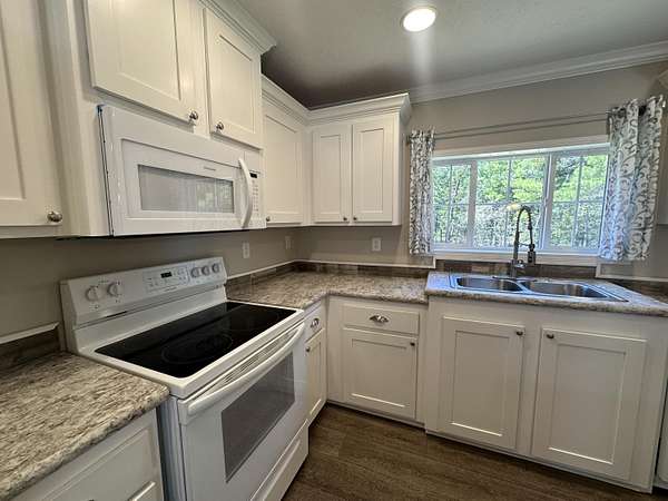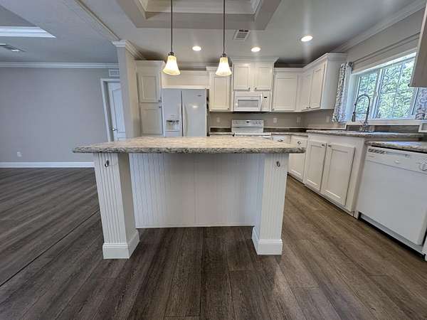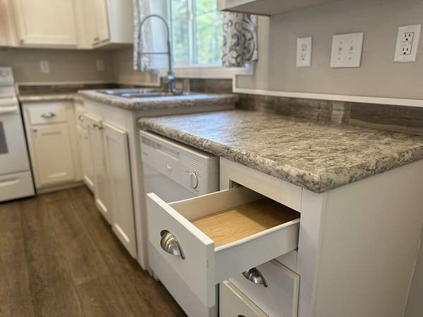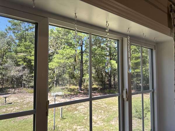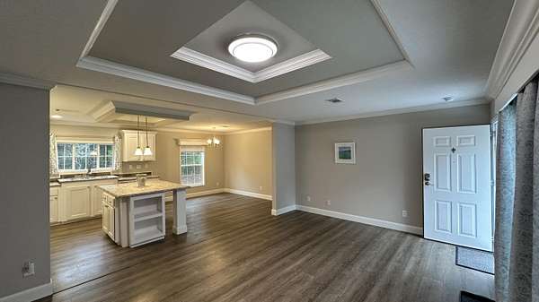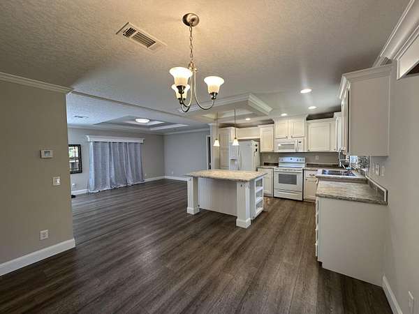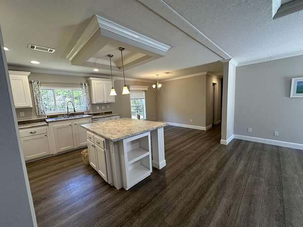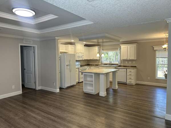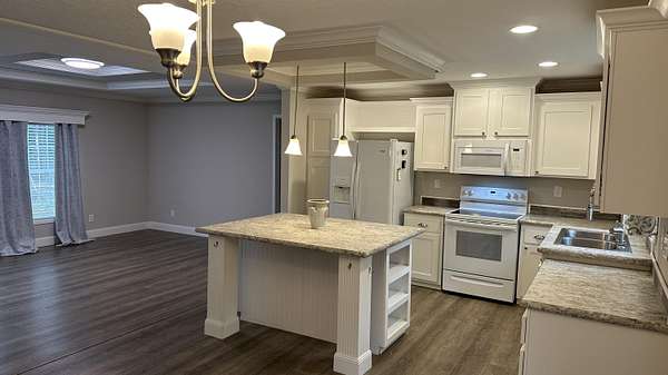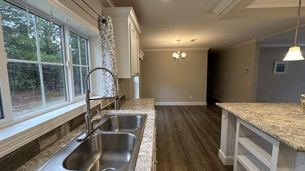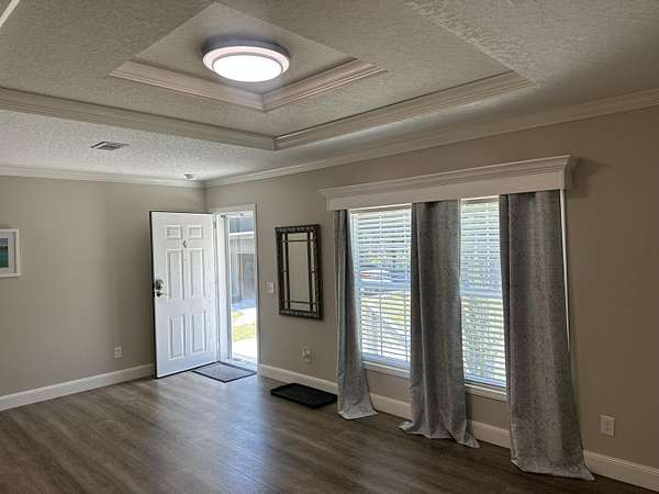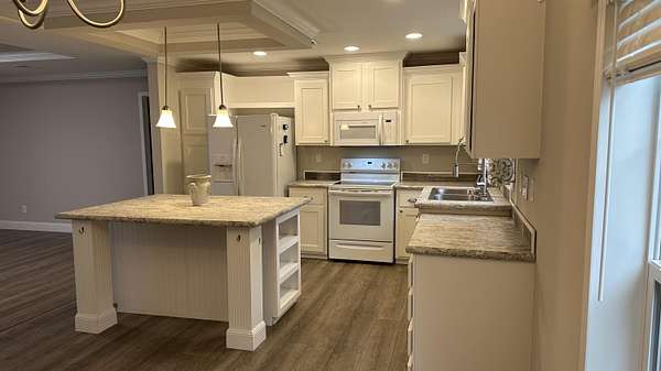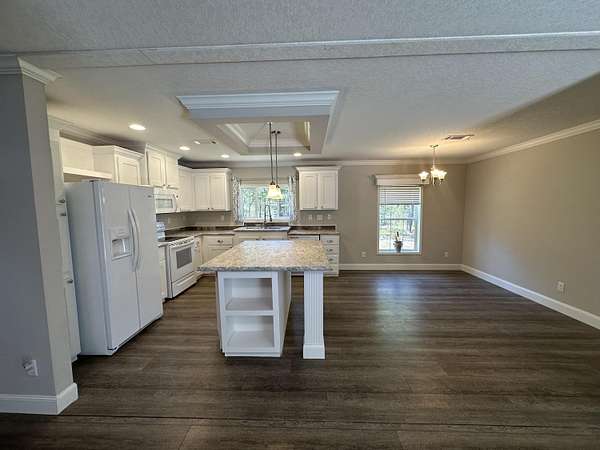 Welcome to 'Deer Run Acres,' a beautifully maintained 2021 mobile home nestled on 4.9 mostly cleared acres adorned with seasonal blooms and natural beauty. This spacious home showcases elegant crown molding, tray ceilings, luxury vinyl plank flooring, and a relaxing primary bath complete with a soaking tub and separate walk-in shower. Wander along the owner-created nature trail, surrounded by colorful flowers and shaded trees - a peaceful path where you can pause to read, reflect, or simply enjoy the quiet sounds of nature. The property also includes a 14-foot-high covered carport with room for up to four vehicles, a boat, or an RV, plus a dedicated electrical hookup for motorhome living - perfect for outdoor enthusiasts or those seeking a balance of comfort & countryside charm.