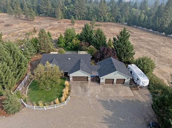 Nestled on 5.21 serene acres in picturesque Sunny Valley, this 3-bedroom, 2.5 bath home offers the perfect blend of rural charm and modern convenience, just 2 miles off I5 and not far from services. With 1,576 sqft of inviting living space, recent updates include a brand-new roof, gas stove, microwave. This mini-farm property is a dream for hobbyists and homesteaders alike-boasting water rights for irrigation, a fully fenced 50'x100' garden, a small orchard, and a chicken coop (complete with chickens). Ample storage and workspace abound with a 4 car garage, a large 24'x16' detached shop with high bay door and 100amp service, and two side carports. RV enthusiasts will love the large parking area with full hookups. Whether you're cultivating the land, working on projects or simply soaking in the valley's beauty, this home is a rare find where comfort meets country. Well tested at 10 GPM!