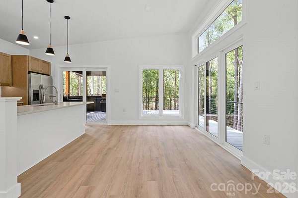 A Bespoke Modern Sanctuary: New Construction Luxury in Golden Creek, Union Mills, NC Welcome to your ultimate mountain retreat! Nestled on a private 1.67-acre lot in the exclusive Golden Creek Subdivision-a neighborhood dedicated entirely to contemporary design-this brand-new, 3-bedroom, 2.5-bath home offers an unparalleled blend of modern luxury and natural serenity. Unmatched Design & Wellness Amenities: Experience seamless indoor/outdoor living with expansive floor-to-ceiling windows and soaring vaulted ceilings that frame the lush, private forest views. The central living area features a stylish stone fireplace and smart recessed lighting with nightlight accents, creating instant ambiance. This is a turn-key escape designed for total rejuvenation. Exceptional Features Included: The home is an oasis of wellness, featuring an exterior Sauna and Hot Tub for year-round enjoyment, complemented by a convenient Outdoor Shower and a dedicated Pet Spa! The Ultimate Outdoor Entertainer: Enjoy the seamless flow from the sleek, modern kitchen to the incredible outdoor spaces. The home boasts over 1,000sf of phenomenal combination of covered and uncovered deck areas, finished with durable Trex Decking and framed by contemporary cable railing. The covered space includes a fully equipped Outdoor Kitchen with a BBQ and Beverage Bar-ideal for entertaining while overlooking your private, wooded acreage. Built for Durability & Convenience: This home is completely turn-key and low-maintenance, featuring a robust metal roof and includes ALL appliances shown (Washer/Dryer, BBQ, Beverage Bar, Sauna, and Hot Tub). Perfect as a luxurious primary residence, a fantastic family getaway, or an immediate, high-end short-term rental investment. Schedule your private showing today and step into your brand-new modern sanctuary!