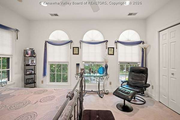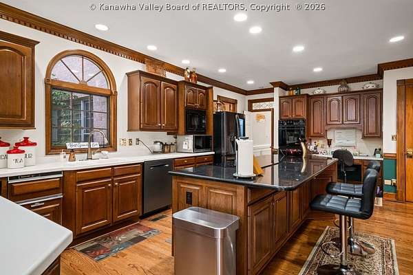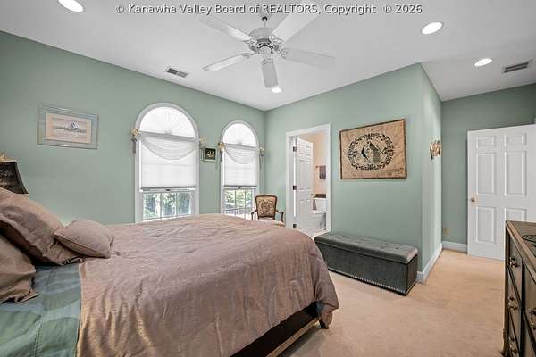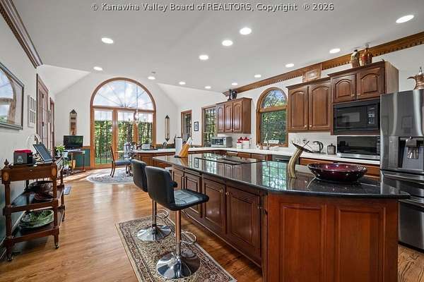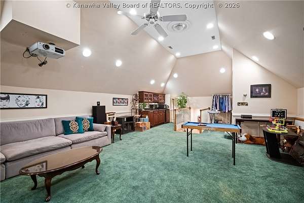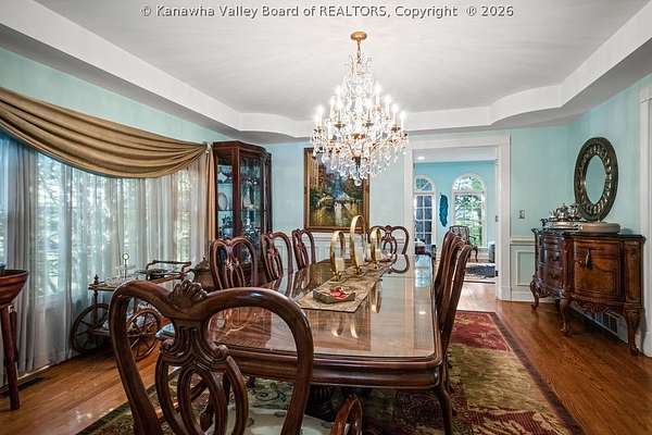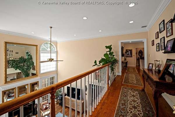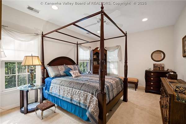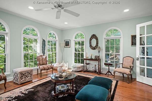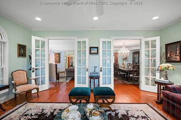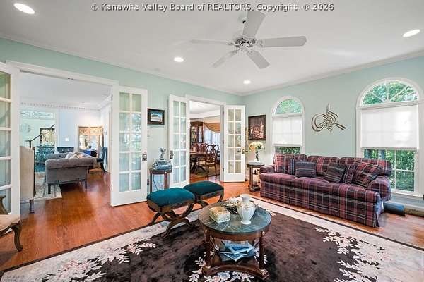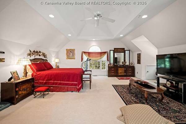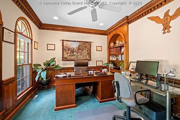Perched atop 4 private acres in prestigious Quarry Creek, this expansive property is the highest elevation on the mountain, and offers breathtaking city and Capitol views during the fall and winter seasons. A flat, private driveway leads to refined interiors, with custom crown molding, marble floors and fireplace, granite and Corian countertops, cathedral ceilings, Palladian windows, hardwood floors, and law-enforcement-linked security system. Perfect for entertaining, it boasts a large kitchen, sunroom, media/recreation room with wet bar, and half bath on finished 3rd floor. It includes 5 bedrooms, 5.5 baths (1 on main floor, 4 on second floor, half on third floor recreation room), 3-car garage, abundant storage. Updates include second floor bathroom faucets, outdoor lamp fixtures, and a 30W liquid-cooled generator. Several rooms and outdoor lighting are smart-home ready. This Charleston landmark was featured in the Homes for the Holidays tour & WV Home Builders Association magazine.