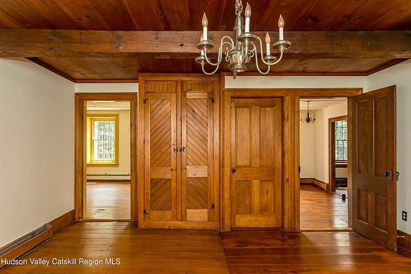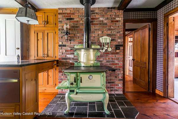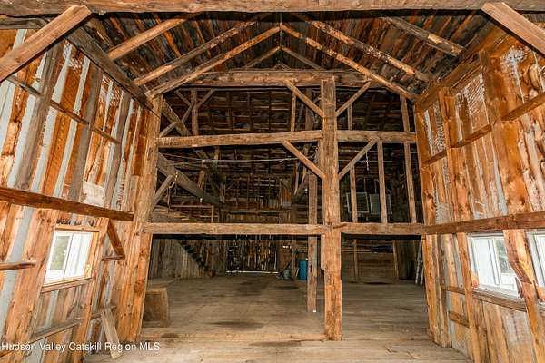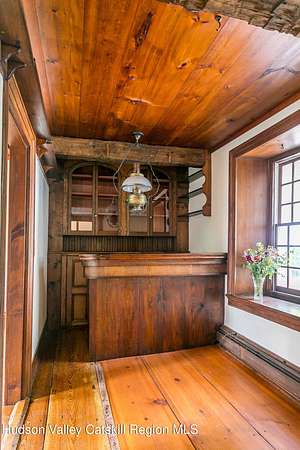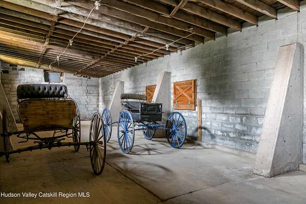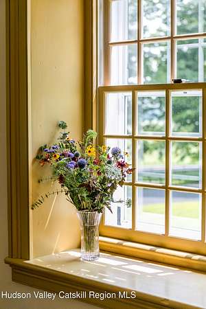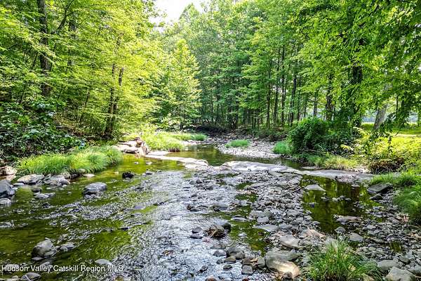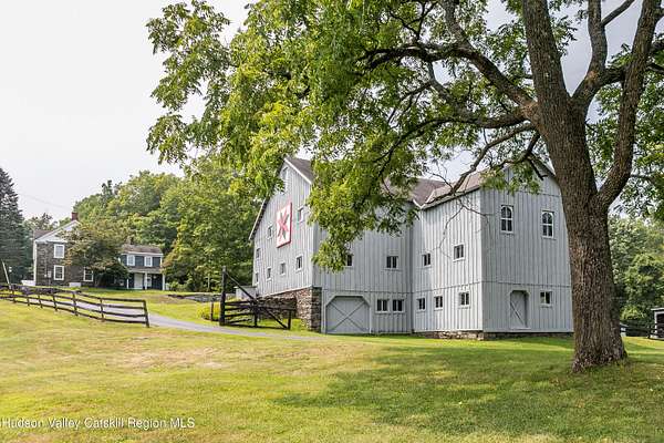 Step into a timeless masterpiece - an exceptional circa-1769 estate that remains a rare jewel of Hudson Valley history. Set across 96 pristine acres and graced with approximately 800 feet of serene stream frontage along the Mombaccus Creek, this remarkable property is a poetic fusion of colonial-era charm and pastoral tranquility. Experience an immediate sense of calm as you arrive along the beautifully paved, winding driveway, where picturesque views of the home, barn, and fenced pasture draw you in and invite further exploration. From the moment one enters, the home greets with elegant authenticity. A grand staircase stands at the heart of the space, accompanied by classic woodwork, hand-crafted built-ins, and wide plank flooring that whispers stories of centuries past. Expansive windows reveal sweeping views of the Mohonk Mountain House, offering an ever-changing canvas of natural beauty from nearly every room. The interior layout reflects its 18th-century origins while seamlessly supporting contemporary living. A cozy living room warmed by a wood-burning stove invites relaxation, while a dedicated entertainment space complete with a full bar promises memorable gatherings. The country-style kitchen blends rustic charm with modern sophistication, featuring top-tier appliances including a Wolf cooktop and oven, Miele oven and Sub-Zero refrigerator ideal for crafting gourmet meals with ease. Adjacent, the formal dining room highlights custom-built-in cabinetry and offers an inviting space for elegant entertaining and intimate gatherings. Transition seamlessly into the formal sitting room, complete with a cozy office nook perfect for working from home while enjoying sweeping views of the pastoral landscape beyond. Ascending the stairs, the second floor reveals three spacious bedrooms, two full bathrooms, and a versatile room perfect for an office, studio, or guest accommodation. A charming rear staircase tucked off the kitchen provides both a nostalgic touch and functional flow. Beneath the home, a full basement delivers ample storage and utility options, and a walk-up attic invites creative expansion. Beyond the walls, the grounds bloom in harmony with the changing seasons. Flowering trees and lush greenery frame every path and pasture. Be enchanted by the old covered bridge stretching over the babbling brook that winds its way behind the homestead. The estate also features a massive three-story barn and multiple outbuildings, allowing endless possibilities for farming, livestock, artisanal workshops, or imaginative pursuits. Spend time roaming the pastures, while enjoying the sound of the Mombaccus creek and taking advantage of the swimming holes on hot summer days. The location offers unparalleled access to the Hudson Valley's finest destinations. Golf and upscale dining await at nearby Inness, while Arrowood Farms and Westwind Orchard serve up craft spirits and fresh fare. Local favorites like Mill & Main Provisions, Flying Goose Tavern, and Rough Cut Brewery bring culinary creativity to the neighborhood. Saunderskill and Kelder's Farms offer seasonal bounty and berry picking come autumn, while Minnewaska State Park presents miles of scenic trails for hiking and biking adventures. Situated just 90 minutes from Metro New York, this property delivers a once-in-a-lifetime opportunity to own a living piece of early American history. Embrace the chance to become the fourth steward of this generational farmstead nestled in the heart of the breathtaking Hudson Valley.