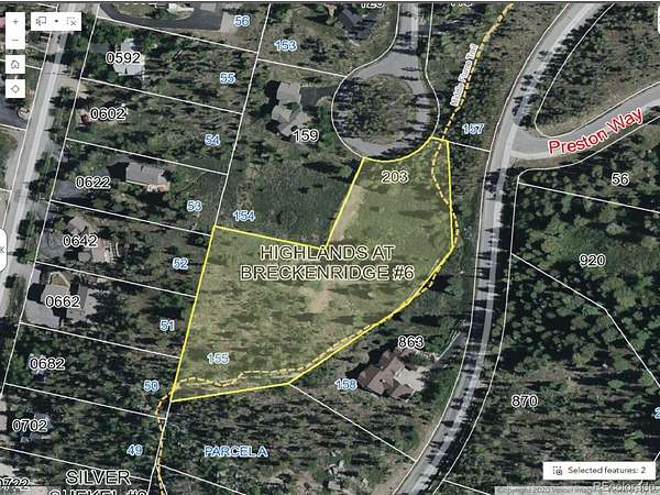 SIGNIFICANT PRICE REDUCTION! Rare gem. Views from Breckenridge Ski Area to Peak One in Frisco. Situated on 2+ acres and bordering HOA-owned Open Space means you will have no neighbor to the south and feels like even larger acreage. This lightly graded parcel provides an easy build and is ready for a legacy home to be built. There are only about 8 developable lots left in the coveted Highlands neighborhood with Breckenridge ski area views. Preliminary architectural plans from renowned Suzanne Allen-Guerra are about two thirds complete allowing for buyer customization. Plans feature a 5 bed, 5.5 bath home with an exercise room, office, elevator, wine cellar, 3-car garage, ample outdoor space, and more. Don't miss this opportunity to be one of the last homes on the "front-side" of The Highlands.