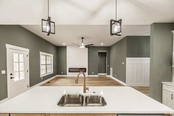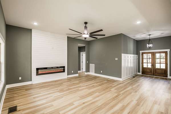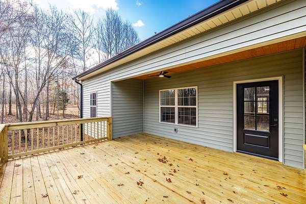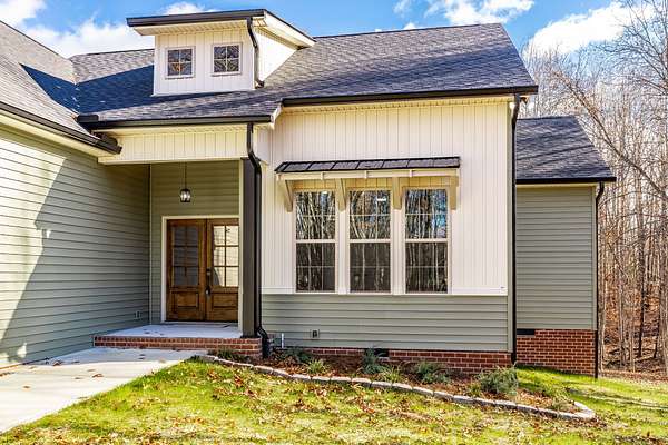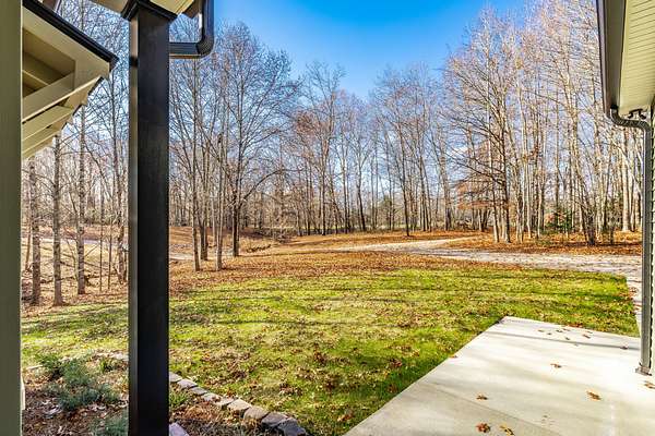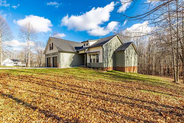 Welcome to your own private retreat! Nestled on 5 secluded, wooded acres, this beautifully designed 2,580 sq. ft. home blends peaceful country living with modern comforts and thoughtful details throughout. Tucked away in a quiet area, this property offers the privacy you've been looking for. Step through the fiberglass Craftsman-style front door into a warm and welcoming entry hall accented with gorgeous trim work that sets the tone for the rest of the home. The spacious living room features a sleek electric fireplace, creating a cozy focal point for gatherings and relaxation. The dream kitchen is a true showstopper complete with quartz countertops, a dedicated coffee bar, custom cabinetry, and a large walk-in pantry. It flows seamlessly into the dining and living areas, making hosting effortless. This home offers 3 bedrooms and 2.5 baths, including a spacious primary suite. The primary bedroom features a barn door entry to the ensuite bathroom, and the custom primary closet offers exceptional organization and storage. A two car fully insulated garage with separate doors provides comfort and convenience. Inside the home, you'll also find a thoughtfully designed under the stairs dog space located in the hallway perfect for pets to have their own cozy spot. The walk-in laundry room includes a sink and a practical mud area for everyday functionality. Upstairs, you'll find a versatile bonus room with its own half bath, offering additional flexible living space to fit your needs. Enjoy the outdoors year round on the partially covered back deck, overlooking your private, wooded surroundings perfect for morning coffee, evening dinners, or taking in the peaceful setting.