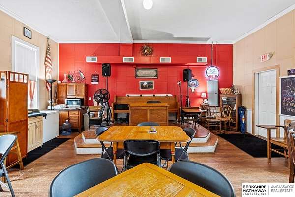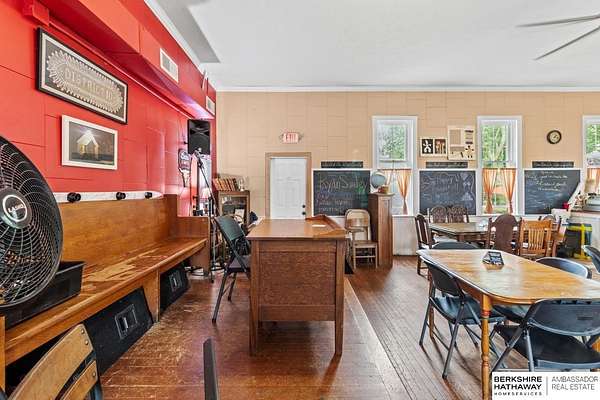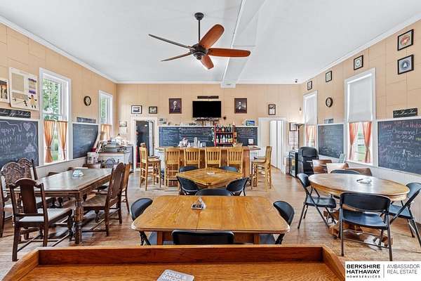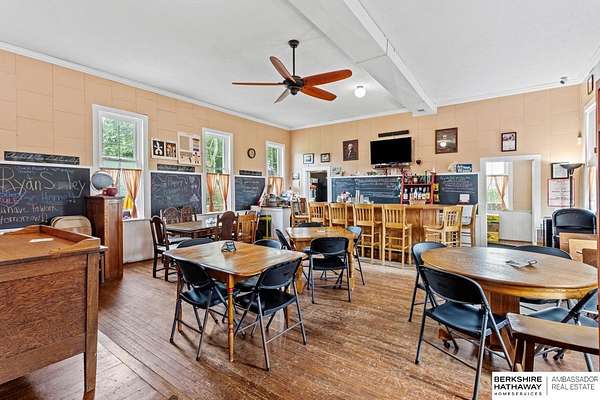 Billy Arthur, C: 402-720-2615, billy.arthur@bhhsamb.com, https://www.bhhsamb.com - Own a rare piece of Nebraska history with this remarkable property featuring a fully converted 1800s schoolhouse turned live music bar with a state-approved kitchen. The iconic District 10 schoolhouse, built in 1877, has been meticulously preserved, showcasing original chalkboards, desks, stage, and bell, while serving as a beloved entertainment venue. The property also includes a 2-bedroom, 2-bath home, detached 2-car garage, multiple outbuildings, and public restrooms for the bar. Sitting on approximately 2 acres in rural Butler County, this one-of-a-kind property offers endless opportunities--continue its success as a historic bar and venue, create an event space, or transform it into a unique private residence. Recognized by the Nebraska Historical Society and documented with the U.S. Department of the Interior, this is a rare chance to own a true landmark.