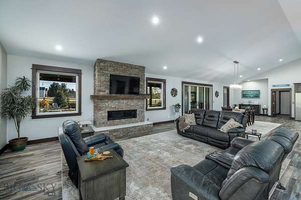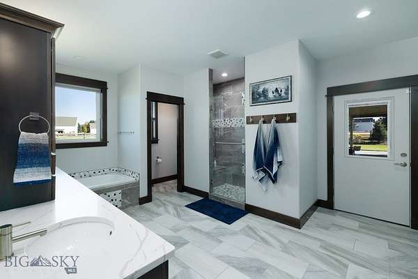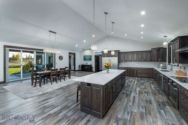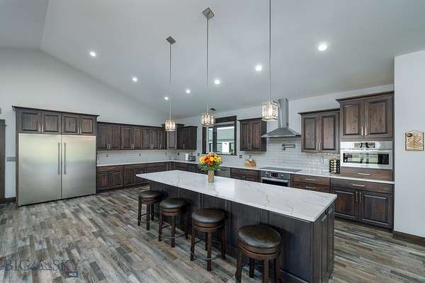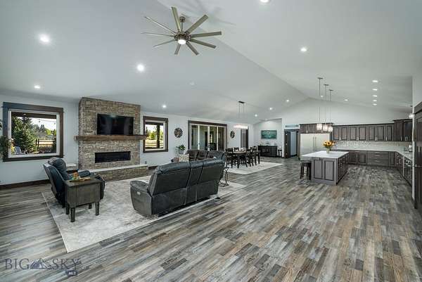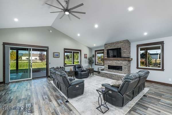 Looking for the property that has it all? This beautiful home could be it! It includes 6 luxurious bedrooms and 4 1/2 baths, an expansive open concept living space, huge family and recreation area, and a 4 car heated garage attached to the main house. In addition to acreage allowing 2 horses, there is a guest house with a large 4 stall shop, (including a space for a boat, RV, or camper) year-round creek in the front, and mountain views from many rooms! Elegant space surrounds you as you walk into the vaulted living area, past the gigantic kitchen, and outside to an elaborate, fully covered wrap-around patio with Bridger Mountain views! Not only is the home conveniently located just outside of Bozeman city limits with easy access to essentially anywhere you need to be, it is filled with quality and attention to detail from floor to ceiling! Equipped with central vacuum, multiple heat and AC zones with humidification, Corbond insulation, multiple water heaters, Mezzo fireplaces, thermal protective windows, up/down cellular shades, security system, solid wood interior doors and trim, radiant heated floors in primary and junior suite, water treatment system with RO, and more! Entertaining large groups is a breeze with so much indoor and outdoor space, recreation room with wet bar, beverage fridge and dual tap kegerator and a flagstone firepit to gather around! Both the main house and guest house yards are fenced with smooth wire to contain small dogs and the entire perimeter is fenced with post and rail. The upstairs apartment in the main home can be utilized as a completely separate living space for relatives or guests, as it comes complete with kitchen, laundry, 2 spacious bedrooms, living area and bathroom. The 360 views and natural light are outstanding, and the covered balcony is great for enjoying the sunsets. The guest house could be perfect for a caretaker, nanny or you guessed it...more relatives! It includes many of the same features as the main house including AC, RO water, LVP flooring, Kitchenaid appliances and up/down cellular shades, and its own fenced yard area. See supplements for a complete list of amenities in this builder-owned home.