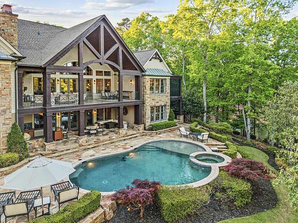 A RARE OPPORTUNITY TO OWN 4.2-ACRE LAKEFRONT ESTATE WITH OVER 500 FT OF SHORELINE IN HORSESHOE BEND AT REYNOLDS LAKE OCONEE WITH RESORT-STYLE AMENITIES AND PRIVACY COMPLIMENTED BY LUSH GROUNDS, CREATING A SERENE ESCAPE. THIS PROPERTY WITH STUNNING MEANDERING DRIVEWAY AND BREATHTAKING VIEWS DELIVER A SEAMLESS BLEND OF REFINED INTERIORS AND ELEVATED OUTDOOR LIVING. THE SOARING GREAT ROOM AND DINING SPACE WELCOME YOU INTO THE MAIN LEVEL WITH A STATEMENT LIMESTONE FIREPLACE AND ABUNDANT NATURAL LIGHT. FRENCH DOORS ANCHOR THE ROOM TO A SPACIOUS OPEN-AIR COVERED PATIO IDEAL FOR ENTERTAINING WITH A SECOND FIREPLACE AND OUTDOOR DINING AREA OVERLOOKING THE POOL WITH A STUNNING LAKE VIEW. THE CHEF'S KITCHEN FEATURES 12-FOOT COFFERED CEILINGS, GRANITE COUNTERTOPS, CUSTOM CABINETRY, AND TOP-TIER APPLIANCES BY SUB-ZERO, WOLF, AND MIELE. A KEEPING ROOM WITH STONE FIREPLACE, BREAKFAST NOOK, AND LAKESIDE SCREENED PATIO INVITE RELAXED LIVING. ALSO ON THE MAIN LEVEL, A NICELY APPOINTED OFFICE SITS JUST OUTSIDE THE PRIMARY SUITE, CREATING A THOUGHTFUL TRANSITION INTO THE PRIVATE QUARTERS. THE PRIMARY BEDROOM SHOWCASES TRAY CEILINGS, DUAL WALK-IN CLOSETS, AND A SPA-INSPIRED BATH WITH A SOAKING TUB AND WALK-IN SHOWER. A SERENE SCREENED PORCH, PERFECT FOR MORNING COFFEE OR TAKING IN SUNSET VIEWS, EXTENDS THE SPACE WITH A QUIET CONNECTION TO THE OUTDOORS. THE TERRACE LEVEL IS THOUGHTFULLY DESIGNED FOR ENTERTAINING, FEATURING A MEDIA LOUNGE, POOL TABLE, PUB ROOM WITH A 650-BOTTLE WINE CELLAR AND TASTING ROOM, AND A HOME GYM WITH A CONVENIENT SHOWER. AN ENTERTAINMENT KITCHEN OPENS TO A COVERED PATIO WITH A FULLY EQUIPPED OUTDOOR KITCHEN, INCLUDING A BUILT-IN GRILL, EVO, STONE ISLAND WITH BAR SEATING, GAS FIREPIT, AND INVITING LOUNGE AREA OVERLOOKING THE HEATED POOL AND HOT TUB. A PRIVATE WALKWAY LEADS TO A LARGE DOCK WITH COVERED BOAT LIFT. ENJOY YOUR OWN NATURE TRAIL IN YOUR PROPERTY. COMPLETING THE INTERIORS, THE GUEST SUITE ABOVE THE GARAGE OFFERS AMPLE SPACE WITH A SITTING AREA/BEDROOM AND FULL BATH, PERFECT FOR EXTENDED VISITS OR LONG TERM STAYS. ADDITIONAL SPACES INCLUDE A WALK-IN PANTRY, POWDER ROOM, LAUNDRY ROOM, HOME OFFICE NOOK, AND BUILT-IN MUDROOM OFF THE 3-CAR GARAGE. WHOLE-HOME AUDIO, INCLUDING INVISIBLE SPEAKERS THROUGHOUT, ENHANCE EVERY SPACE. JUST MINUTES FROM RICHLAND POINTE AND A SHORT BOAT RIDE TO THE RITZ-CARLTON, IT IS RARE TO FIND LAKEFRONT ACREAGE THAT OFFERS BOTH SANCTUARY AND CONNECTION IN ONE OF REYNOLDS' MOST COVETED LOCATIONS. MEMBERSHIP AVAILABLE.