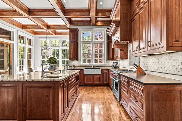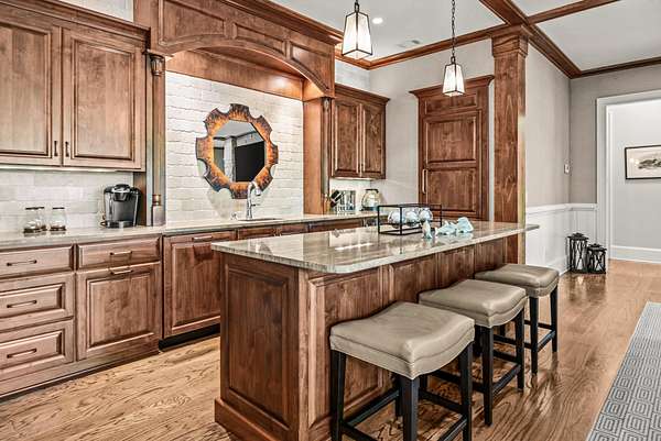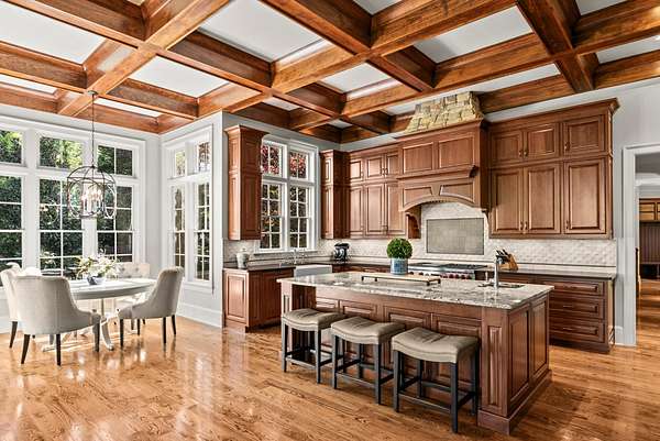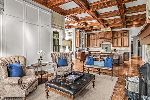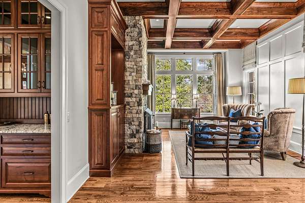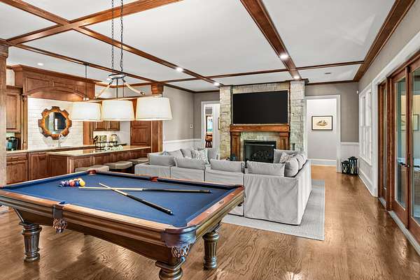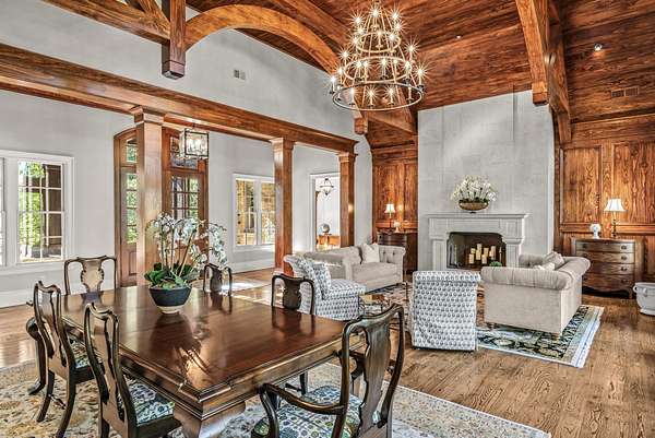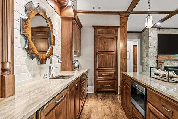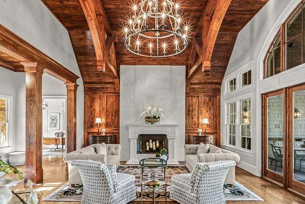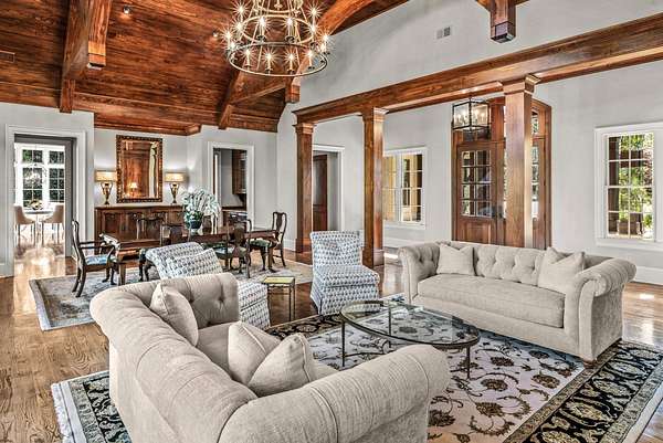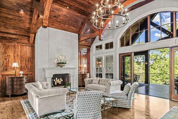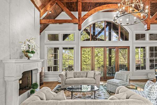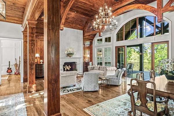 - Abv Garage, Chefs Kitchen, Custom Cabinets, Ensuite, High Ceilings, Lake & Pool Views, Limestone FP, Lounge Area, Open to Greatrm, Primary On Main, Smoke Detector, Spa, Whole House Watersoftener, Window Treatments, Wood Beamed CLG