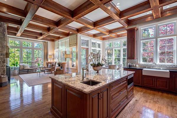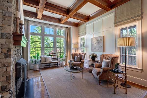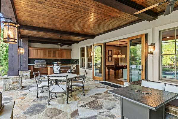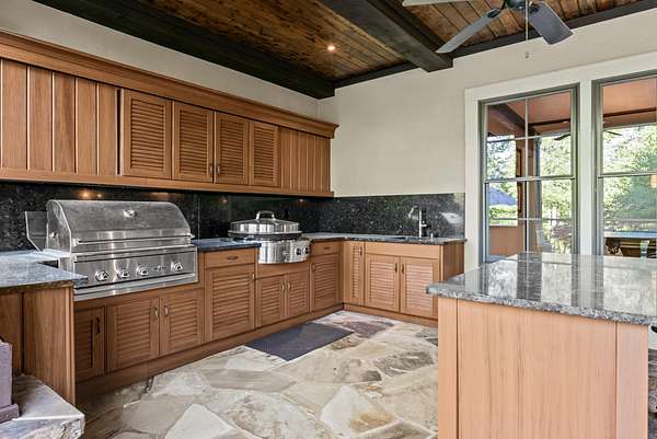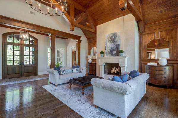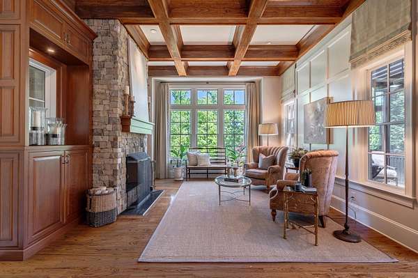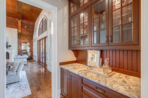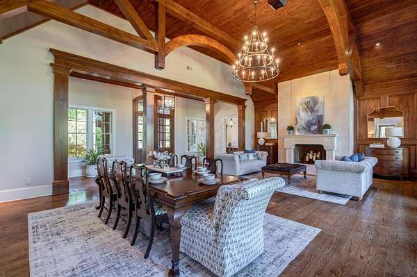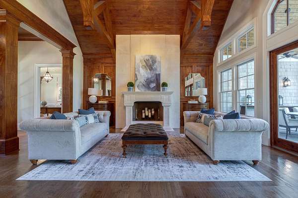 - Abv Garage, Chefs Kitchen, Custom Cabinets, Ensuite, High Ceilings, Lake & Pool Views, Limestone FP, Lounge Area, Open to Greatrm, Primary On Main, Smoke Detector, Spa, Whole House Watersoftener, Window Treatments, Wood Beamed CLG