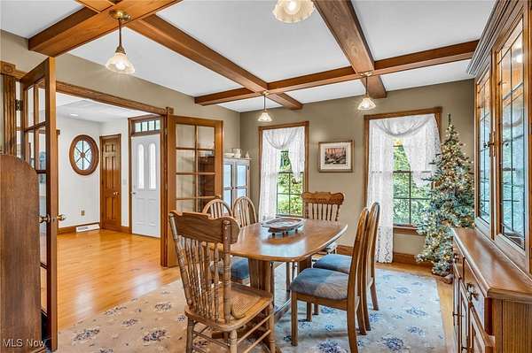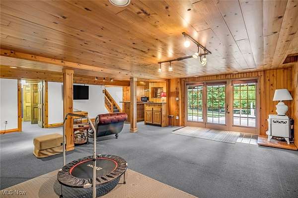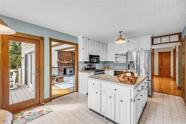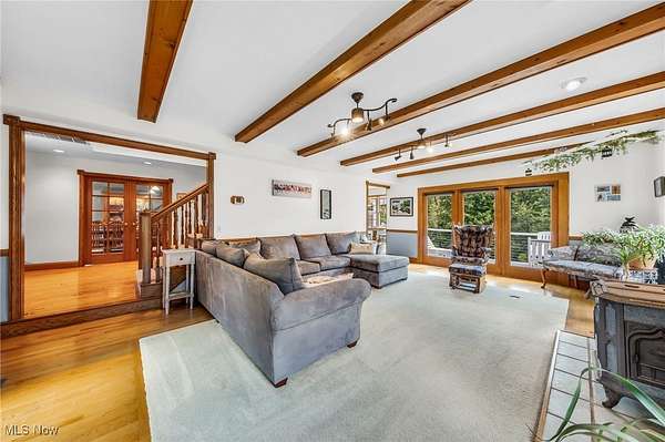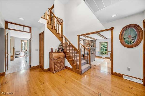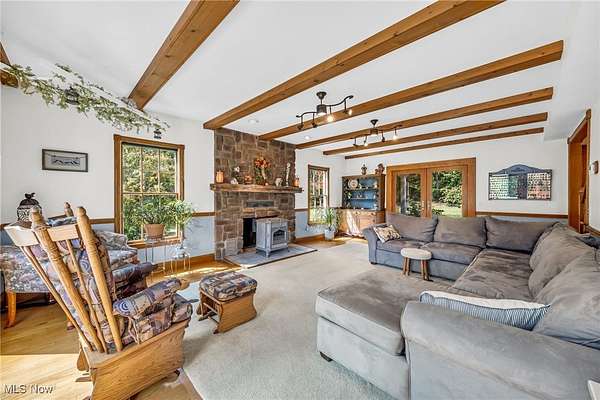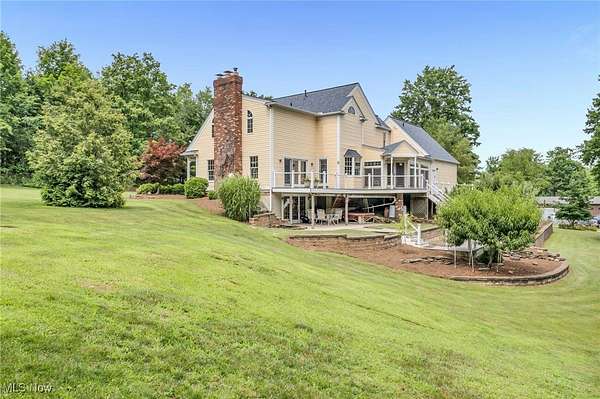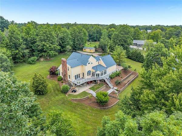 Welcome to a truly special property where comfort, elegance, and nature come together in perfect harmony. Nestled on nearly 5 private acres, this beautifully maintained four-bedroom, three-and-a-half-bath home offers a lifestyle that's both luxurious and serene. Step into a dramatic two-story foyer with soaring ceilings and hardwood floors. The family room, centered around a cozy fireplace with a wood-burning insert, flows into a bright eat-in kitchen with a bay window overlooking the peaceful grounds. A formal dining room and spacious sunroom offer ideal spaces for entertaining or relaxing. The convenient first-floor laundry room adds ease to daily living. Upstairs, the primary suite is a true retreat with three walk-in closets, custom wood shelving, a luxurious tiled walk-in shower, dual vanities, and attic access. A second private suite includes its own full bath and generous closet. The third and fourth bedrooms feature luxury vinyl tile and ample space. The finished walk-out basement includes a full bath, plumbing-ready bar area, and access to a large covered patio-ideal for entertaining or creating a separate living space. A whole-house water filtration system adds peace of mind. Outside, the property shines with garden beds, a rainwater collection system, compost station, fruit trees (peach, cherry, plum, pear, and apple), and berry bushes. A multi-level Trex deck, two creeks, and wooded perimeter create a peaceful, private setting. There's also a 28' x 14' electric-equipped workshop and a large two-story barn with two bays (one oversized) and extra covered storage. This is more than a home-it's a lifestyle. Private yet conveniently located, it's the perfect blend of gracious living and natural beauty. Schedule your private showing today!