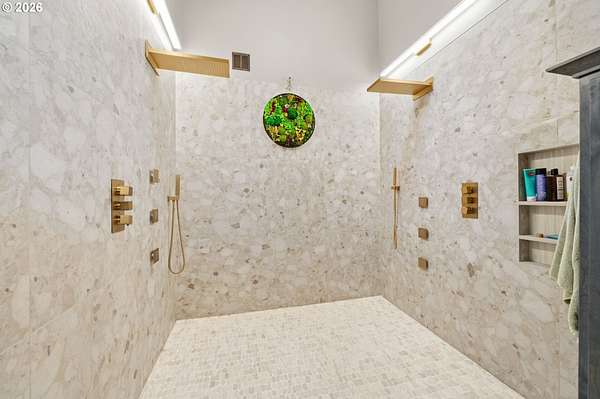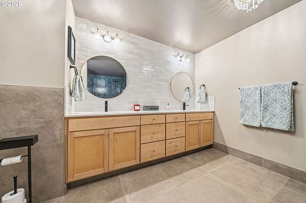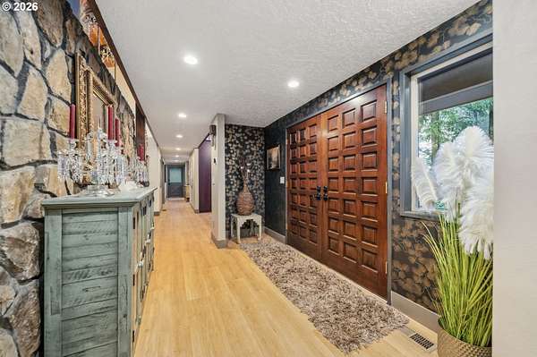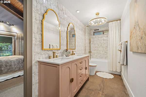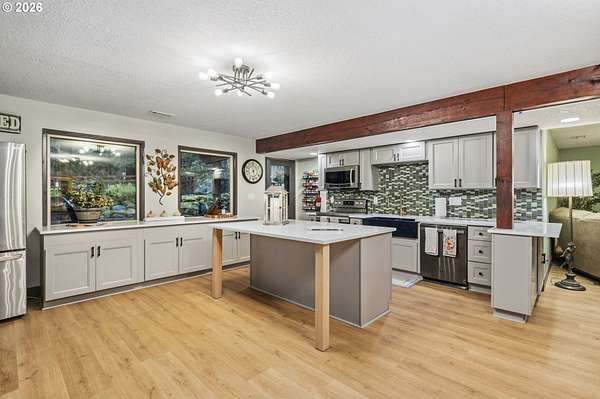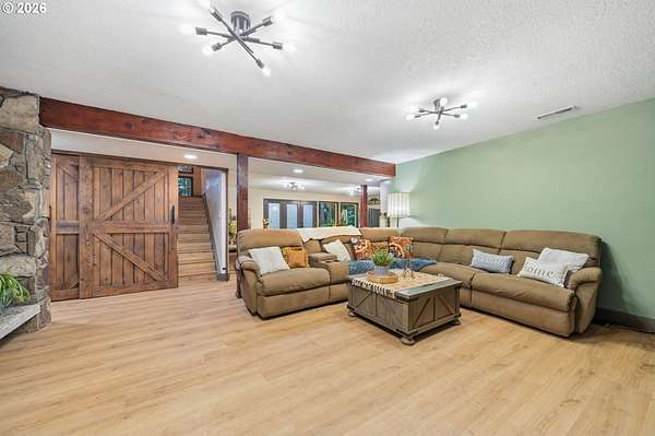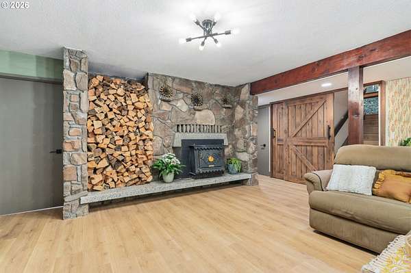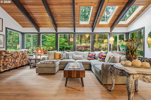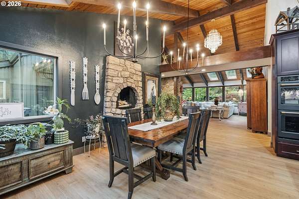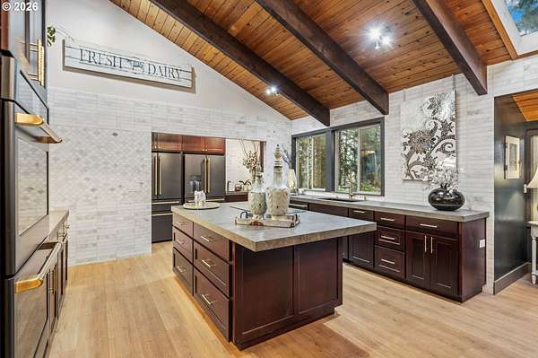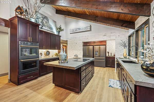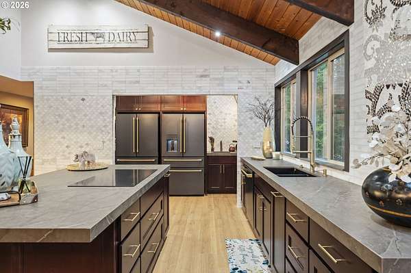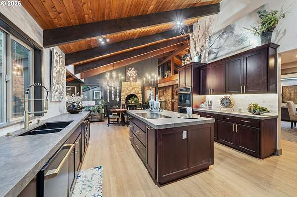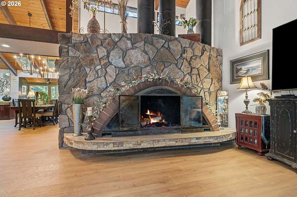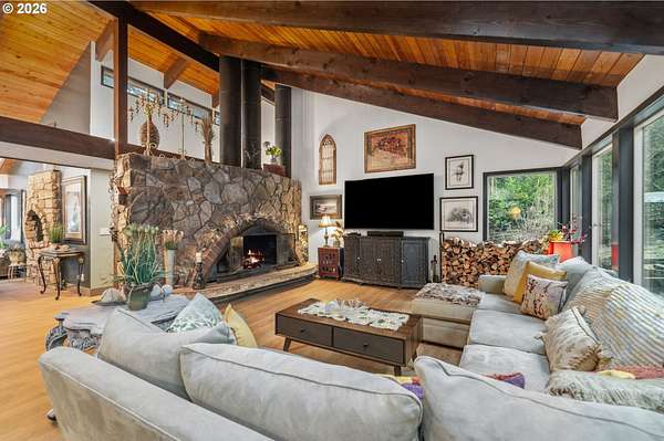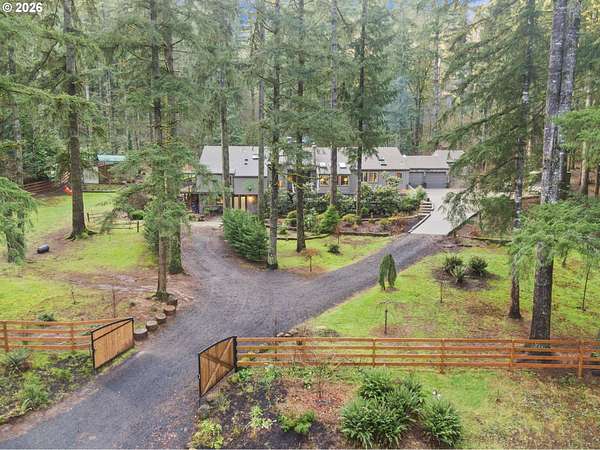 With a newly completed, fully renovated interior from top to bottom, this revitalized luxury lodge retreat offers the feel and finish of a brand-new home on 2.4 private acres. Designed as two homes in one, this multigenerational property features five bedrooms, 3.5 baths, a fully functioning lower-level ADU, and four stunning stone fireplaces throughout, creating spaces that invite connection, comfort, and effortless entertaining.The chef's kitchen is a true showpiece with marble surfaces, a full-height marble backsplash, premium Cafe appliances, and two Cafe refrigerators, along with all brand-new, high-end designer appliances. A convenient kitchenette / coffee station just off the main kitchen adds additional functionality for daily living and entertaining. The kitchen flows into a dramatic great room with vaulted beam ceilings and a stone fireplace, perfect for gatherings large or intimate.Throughout the home, no detail has been overlooked: new cabinetry, high-end quartz countertops throughout, new flooring, low-VOC paint, and new 5" baseboards with custom casing create a cohesive, elevated finish. Bathrooms feature oversized designer tile on floors and walls, continuing the high-end, modern aesthetic.Radiant heated floors anchor the primary bath, paired with a curbless walk-in shower with linear drain, dual rain heads, and body jets-designed for both accessibility and indulgence. Finished with a bidet, the primary bath reflects thoughtful, modern design. A private sauna offers space for rest and recovery.Tucked away in a quiet cul-de-sac within a desirable equestrian neighborhood, this mostly fenced and gated property invites you to bring your horses and enjoy nearby riding trails, all while surrounded by forested privacy and natural beauty. Despite its serene setting, the home remains just 20 minutes to Vancouver and 30 minutes to Portland, offering both seclusion and convenience.This is a private retreat made to be felt, shared, remembered.