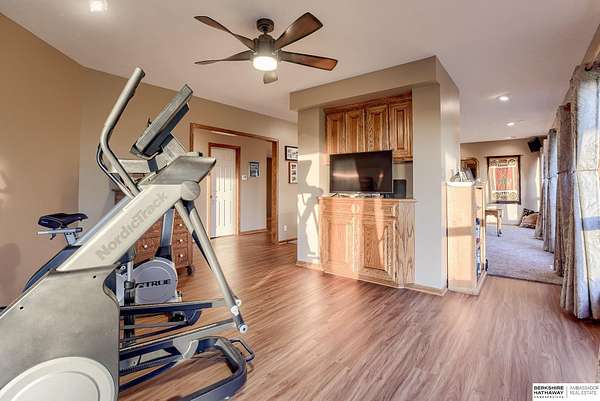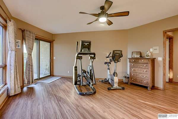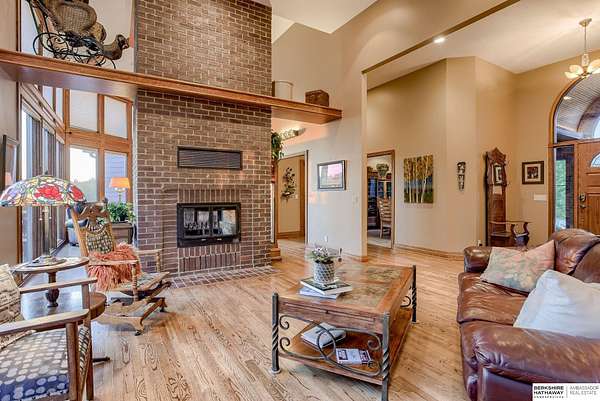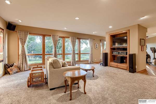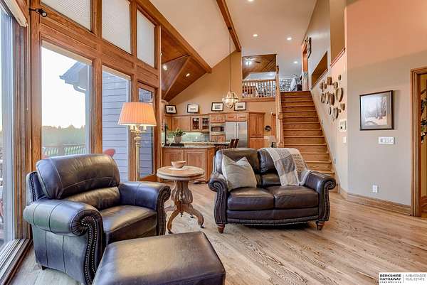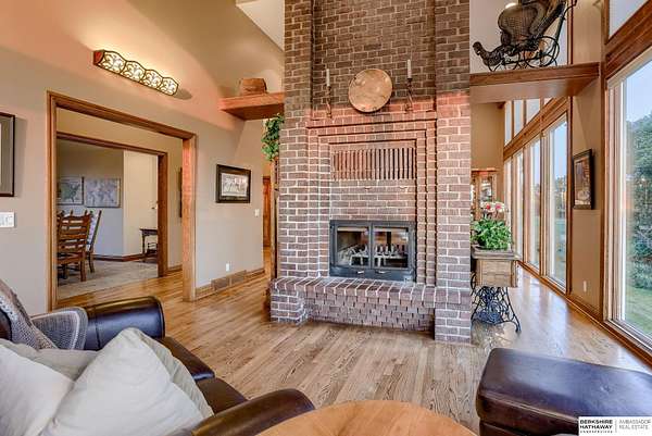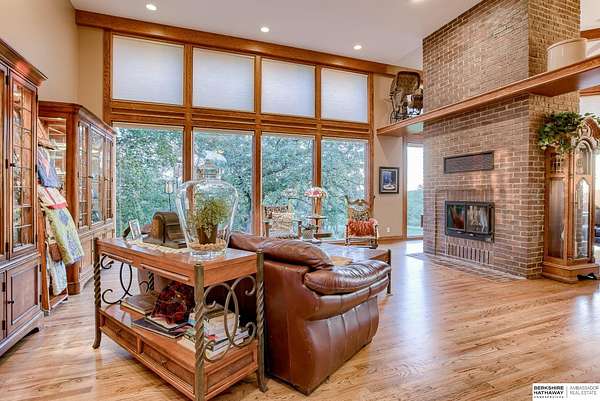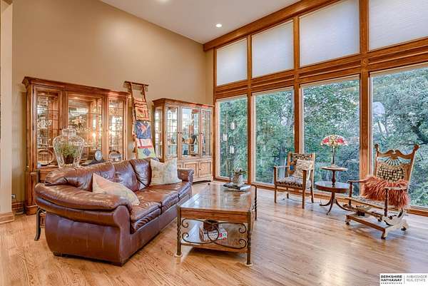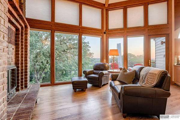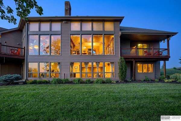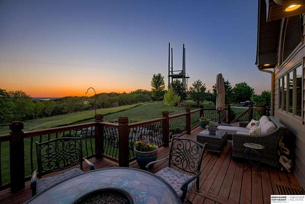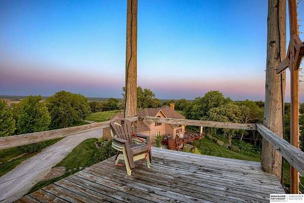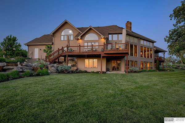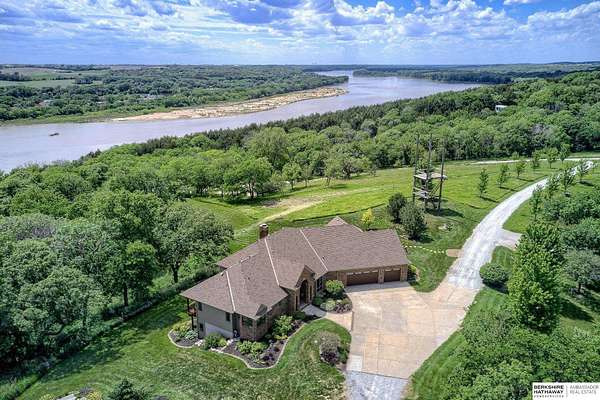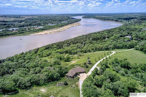 Dani Schram, M: 402-618-3259, dani.schram@bhhsamb.com, https://www.danischram.com - Enjoy the winding wooded drive up to your stunning estate nestled on 20 rolling acres of trees & meadows overlooking the Platte River. Truly a one-of-a-kind property, a rare find in our market. Throughout the first floor are hardwood floors & floor-to-ceiling windows to sit back & enjoy the ambiance. Open main floor includes a luxury kitchen with custom cabinetry, granite countertops, & stainless-steel appliances. Outside is a large deck space to enjoy beautiful sunsets. The large master suite includes a vaulted ceiling, hardwood flooring, large walk-in closet plus a stunning spa-like bath, & a private deck with forest views. The finished walkout basement has three additional guestrooms, two bathrooms, a bar, & a large family room making this the perfect set-up for additional guests, family, & entertaining. Additional house features include professional landscaping. Beyond the house is a 30 x 40 outbuil