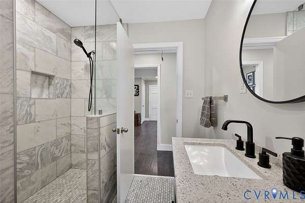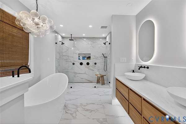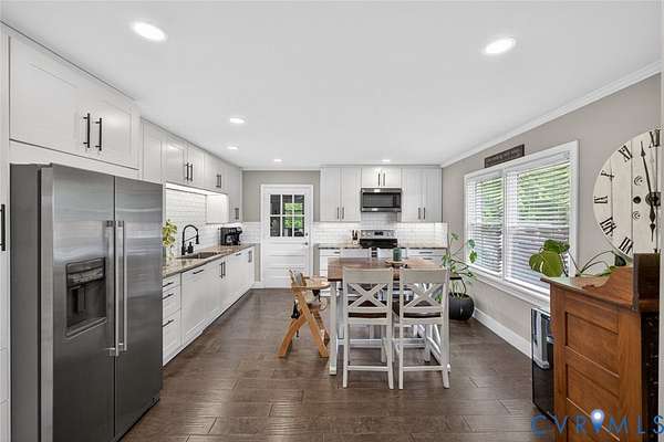 Welcome to refined country living at its finest. Nestled on 3 private acres in sought-after Goochland County, this fully updated 3-bedroom, 2-bath brick ranch offers the perfect blend of luxury, comfort, and tranquility-just 20 minutes from Short Pump. Step inside to an airy open-concept design where wide-plank hardwood floors flow seamlessly throughout. The inviting family room, anchored by a cozy wood-burning fireplace, opens effortlessly into a beautifully appointed eat-in kitchen featuring stainless steel appliances, custom cabinetry, granite countertops, tile backsplash, and elegant under-cabinet lighting-designed for both everyday living and elevated entertaining. The primary suite is a true retreat, boasting a spacious custom 9x7 walk-in closet and a spa-inspired en suite bath. Indulge in the soaking tub or unwind in the oversized zero-entry tiled shower, thoughtfully designed with dual zones-one side featuring double shower heads, and the other a dedicated head with handheld wand for a personalized experience. The space is complete with a double vanity, upgraded lighting, linen storage, and a premium TOTO toilet with heated seat and bidet. Subtle under-cabinet vanity lighting adds a soft, luxurious ambiance. Two additional bedrooms offer generous closet space and share a beautifully finished hall bath with marble flooring and a walk-in shower, along with a stylish vanity with storage. Additional highlights include a one-car attached garage with laundry area, plus peace of mind with major system updates: NEWER HVAC, NEW roof, NEW hot water heater, and NEW septic system. Surrounded by the protected beauty of the Breeze Hill Rural Preservation Area, this property offers a rare sense of serenity and space-without sacrificing convenience. This is more than a home-it's a lifestyle. Schedule your private tour today.