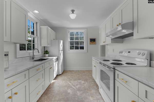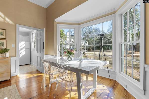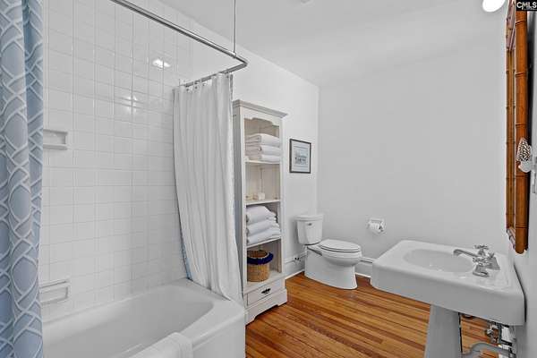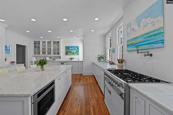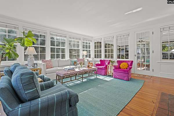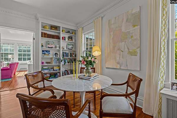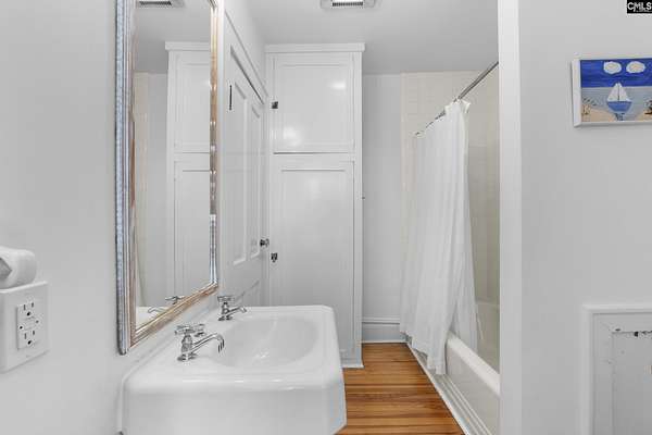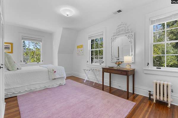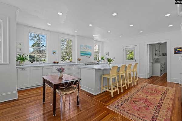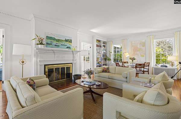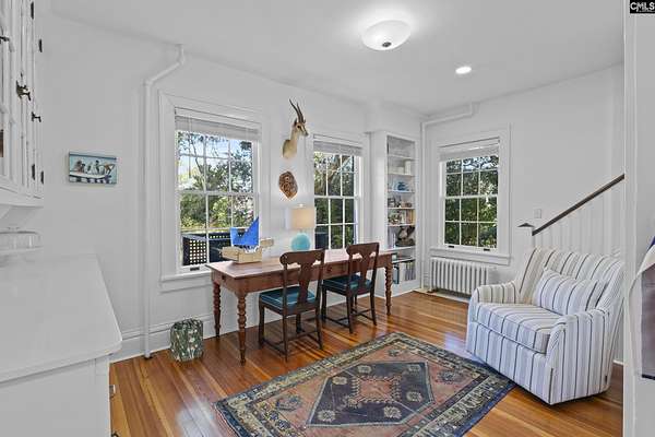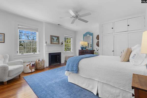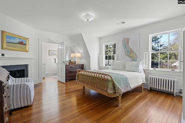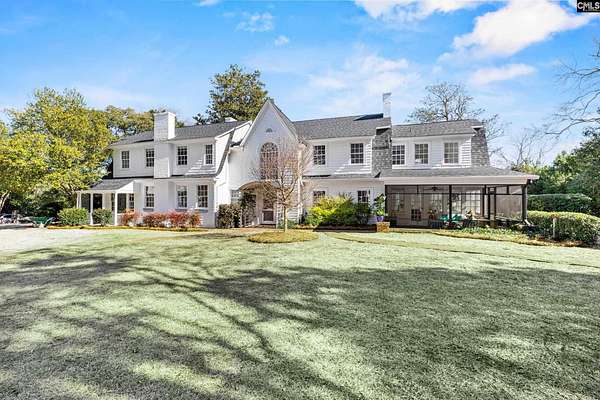 Perched gracefully atop 2.64 acres of Hobkirk's Hill, this historic residence, known as Happy Hill C1917, is a rare offering in the heart of Historic Camden. Set back from the road, the main house is surrounded by manicured lawns and gardens, stables, a barn, detached garage, and a charming guest house. Since 2022 the home has undergone significant renovations, from the roofs to new HVAC, marrying historic character with refined modern luxury. The main residence showcases original single-sourced heart pine floors in every room (refinished in '22); original painted cedar shake siding; intricate crown molding; 7 wood burning fireplaces with ornate mantels and clay-lined chimneys; an original grand arched-window on the back landing; and beautifully updated living spaces. The first level features a formal living room, formal dining room, sunroom, expansive kitchen with breakfast table, private office, and a proper mudroom. A stunning screened porch off of the sunroom overlooks the expansive west side of the property creating a serene retreat for morning coffee or evening gatherings. At the heart of the home is the fully renovated gourmet kitchen, featuring marble countertops, custom designed and constructed inset cabinets, two sinks, refrigerated drawers, and high-end finishes that elevate both form and function. The second level offers five generously sized bedrooms, each with its own updated bath. A full unfinished basement, with a half bath already in place offers abundant storage or a future recreation space. Completing the estate's living quarters is a beautiful guest cottage, whose main living space was once the kitchen for the house originally built on the property. The cottage features a large bedroom, full bath, family room with a central fireplace, dining area, and full kitchen. The stables, built in 1932 and designed by a former president of the Camden Polo Club, honor Camden's equestrian heritage. The entire structure includes four full stalls, a feed room, several tack rooms and a half bathroom as well as a giant second floor hayloft. Across the lawn from the stables is a full-sized gable barn and a garage. A truly remarkable Camden Estate.