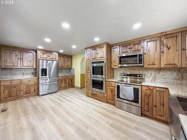 Newly remodeled and has not been lived in since, this home is move-in ready! This charming country home is tucked away on nearly 3 private acres, surrounded by trees and natural beauty. The spacious, brand-new kitchen features granite countertops, soft-close cabinets and drawers, and three ovens-perfect for the home chef or entertaining guests. With 3 bedrooms and 2 baths, the home showcases warm, woodsy details throughout. Outside, you'll find an oversized detached garage with an attached lean-to carport, providing ample room for vehicles, tools, or toys. A brand-new water treatment system has been added to the existing shallow well, housed in a newly built enclosure. The fully fenced property boasts a large paver patio ideal for relaxing and taking in the territorial views. Mature landscaping includes Rhododendrons, Azaleas, and majestic Fir trees. Located just 1 mile from breathtaking Whaleshead Beach State Park, this is a rare opportunity to own a peaceful retreat close to the coast. Be sure to watch the Matterport Virtual Tour #SouthCoastOregon #BrookingsOregon #PacificNorthwest