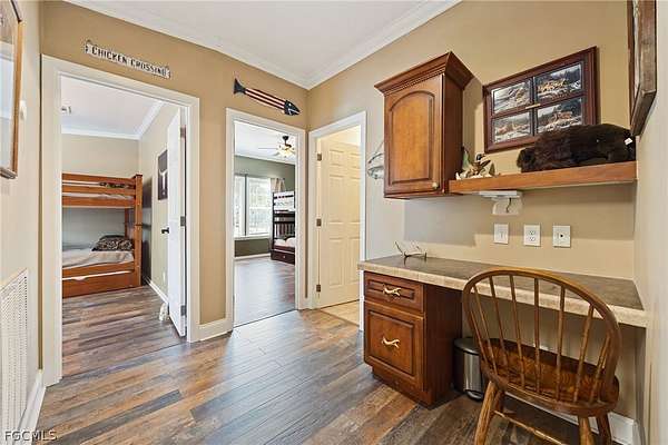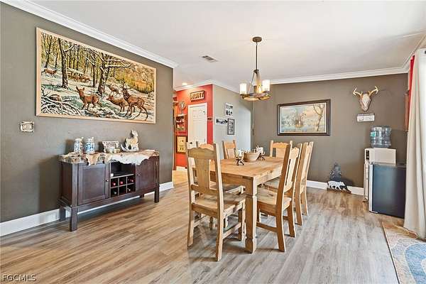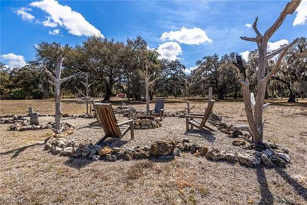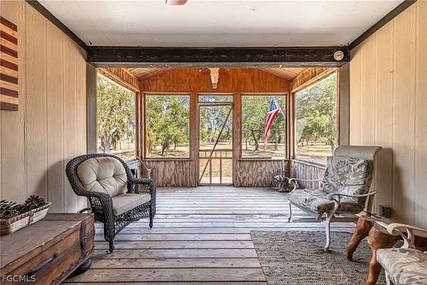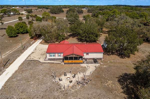 Turnkey country living on over 6 beautiful acres beneath majestic oak trees! This spacious 4-bedroom, 3.5-bathroom home is being sold fully furnished, offering a rare move-in-ready opportunity in the peaceful countryside of Ortona, Florida. Built in 2011 and offering 2,920 square feet under air, the home features a durable metal roof, a thoughtfully designed floor plan, and plenty of space for both everyday living and entertaining. A welcoming covered front porch leads into a bright and inviting interior with high ceilings, crown molding, and wood-style flooring throughout much of the home. The large main living room flows seamlessly into the dining area and expansive kitchen, creating an open gathering space ideal for family and guests. The kitchen offers abundant cabinetry, generous counter space, a center island, and a breakfast bar overlooking the living area, making it both functional and perfect for entertaining. The split-bedroom floor plan provides privacy and flexibility. The spacious primary suite offers plenty of room to unwind and includes an ensuite bathroom with dual vanities, a soaking tub, and separate shower, along with a walk-in closet. Three additional bedrooms are well-sized and provide comfortable accommodations for family, guests, or a home office setup. Outdoor living is just as appealing. A large screened-in back porch overlooks the scenic acreage and offers the perfect place to relax and enjoy Florida's natural beauty. The property features mature oak trees, open grassy areas, and plenty of room for outdoor recreation, gardening, animals, or additional outbuildings. A detached workshop/garage with a roll-up door provides excellent storage for equipment, tools, or hobbies. Conveniently located within easy driving distance of LaBelle, Moore Haven, and the Caloosahatchee River, this property offers the perfect balance of privacy and accessibility. Whether you're looking for a full-time residence, seasonal retreat, or private rural getaway, this fully furnished home on 6+ acres delivers space, comfort, and the true charm of country living.