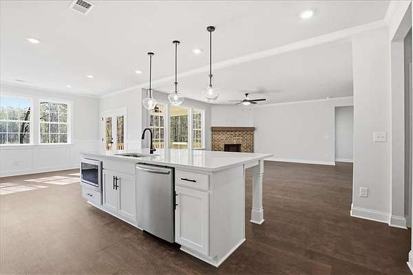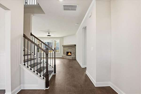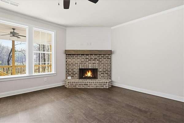 DON'T MISS OUT ON OUR $15,000 BUILDER INCENTIVE!!! - Beautiful New Construction Home with Master on Main, in the beautiful Gated Community of Bradley Gen - Only 6 Opportunities Remain! Nestled on a quiet cul-de-sac, this beautiful ranch home sits on a sprawling estate-sized lot on Seclusion Trail, offering the perfect blend of privacy, luxury finishes, and natural beauty. The property is the only lot in the community featuring a private owner's walking trail that winds through the wooded landscape and connects to the community lake. Just beyond the tree line, a peaceful creek runs through the property, creating a serene and tranquil setting. Upon entering the home, you are welcomed by a foyer that opens to a formal dining room featuring upgraded judges paneling and detailed trim work. The spacious living room is anchored by a stunning masonry gas-burning fireplace with a mantle and shiplap accent detail, creating a warm and inviting focal point. The kitchen is designed for both everyday living and entertaining, featuring sprawling quartz countertops, a large island with three pendant lights, and an upgraded gourmet kitchen package that includes a cooktop, built-in microwave, upgraded range hood, and double ovens. A walk-in pantry with shelving provides ample storage. The adjoining breakfast area also showcases upgraded judges paneling and offers a bright, casual dining space with access to the covered back porch. Step outside to enjoy the covered porch complete with ceiling fan and lighting, overlooking the picturesque wooded backyard. The main-level primary suite offers a peaceful retreat with large windows that provide tranquil views of the private wooded backyard. The luxurious primary bathroom features full tile flooring, a large walk-in tiled shower, a garden tub with tile surround, double vanities with upgraded hardware, and abundant cabinet space. A large tempered glass window allows natural light while framing scenic views of the estate lot. The suite also includes a spacious walk-in his-and-hers closet. Additional main level features include a large laundry room with decorative tile flooring, a coat closet, and convenient access from the two-car garage into a utility landing area. The main level also provides access to an unfinished basement with a half bathroom, offering excellent potential for future expansion. Upstairs, upgraded stained oak stair treads with a matching handrail lead to three additional bedrooms. One bedroom features beautiful lake views, while another offers great views of the surrounding property. The third upstairs bedroom includes its own private full bathroom and walk-in closet, creating an ideal guest or private suite. All secondary bedrooms feature large walk-in closets. A hallway closet provides additional storage, and a full bathroom serves the upper-level bedrooms. With an estate-sized lot of 2.27 acres, scenic wooded surroundings, a private walking trail to the community lake, and beautiful interior upgrades throughout, this home offers a rare opportunity to enjoy peaceful luxury living in a truly unique setting.
