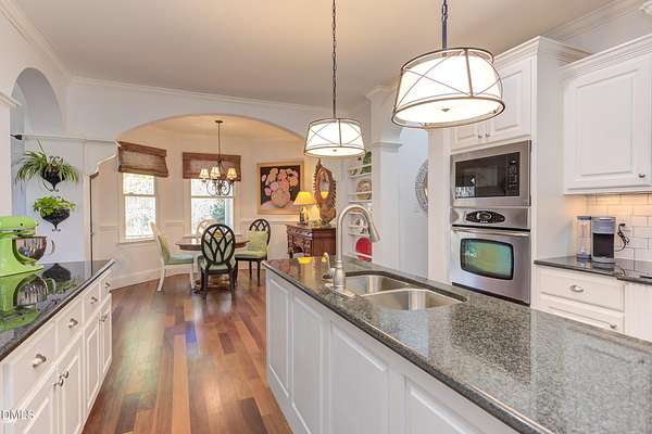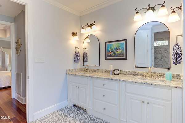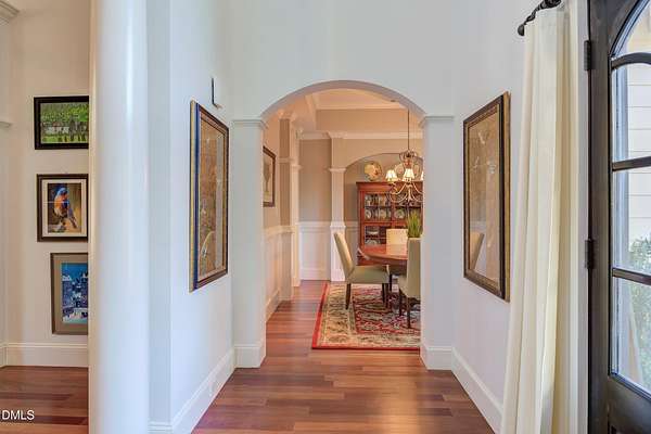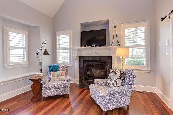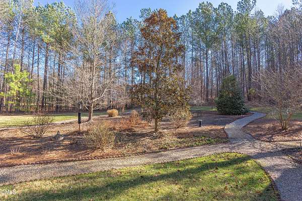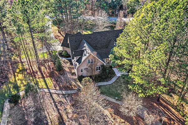 Rare opportunity! This Steven Hayes Custom Ranch sits on 2.42 private, wooded acres just minutes from Wake Forest. This true ranch floor plan features four bedrooms and three full baths on the main level. The grand primary suite serves as a true retreat, boasting a large sitting area with fireplace and a completely remodeled luxury bath with a massive walk-in closet. Three additional large 1st floor bedrooms: Two joined by Jack-n-Jill bathroom. The heart of the home is a chef-inspired gourmet kitchen equipped with a gas range, granite island, and custom cabinetry. It opens seamlessly to a vaulted family room anchored by a custom fireplace and built-ins. Site-finished Cumaru hardwoods run throughout the entire first floor including bedrooms. Enjoy pristine views through a stunning ''wall of windows'' or relax on the vaulted covered rear porch. Second floor features, large bonus room w/newer LVP flooring, built-ins, closet and 4th full bath. There is unfinished walk-in storage of 770 square feet easily finished for additional living space. Key Upgrades include: New Roof in 2024, First floor HVAC 2021, New tankless hot water heater. The level of detail and custom features is unsurpassed! Please see 3D tour link!