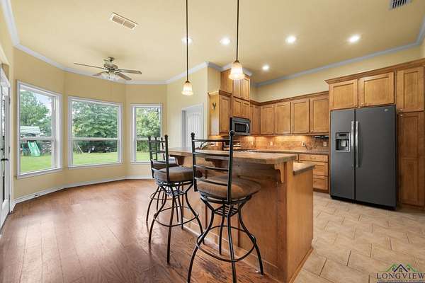 Welcome to this beautifully updated 4-bedroom, 2-bathroom home offering an impressive 2,500 square feet of well-designed living space. Nestled on 2 acres, this property is located just about a mile off Hwy 271, south of Gladewater, with easy access to Longview, Tyler, and surrounding East Texas communities. From the moment you step inside, you'll notice the attention to detail and pride of ownership throughout. The open-concept layout is perfect for both everyday living and effortless entertaining. Soaring high ceilings enhance the sense of space and light, while rich wood and sleek tile flooring provide warmth, style, and durability. The heart of the home is the spacious kitchen, featuring beautiful granite countertops, abundant cabinetry, and plenty of prep space, ideal for cooking, hosting, and creating memories with family and friends. All four bedrooms are generously sized and filled with natural light. The primary suite serves as a peaceful retreat, complete with a well-appointed en-suite bathroom designed for comfort and relaxation. This home also offers a home office space off of the master bedroom. Recent upgrades bring true peace of mind, including a brand-new roof, high-efficiency A/C system, and new aerobic septic system; three major improvements have already been completed for you. Step outside to enjoy the large backyard, offering endless possibilities, whether you're gardening, adding a pool, or simply enjoying the quiet of your own private outdoor space. Whether you're searching for your forever home or a smart investment opportunity, this move-in ready property is a rare find with so much to offer. Don't miss your chance to schedule your private showing today and come experience all that this exceptional home has to offer.