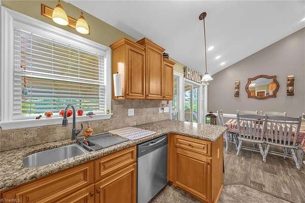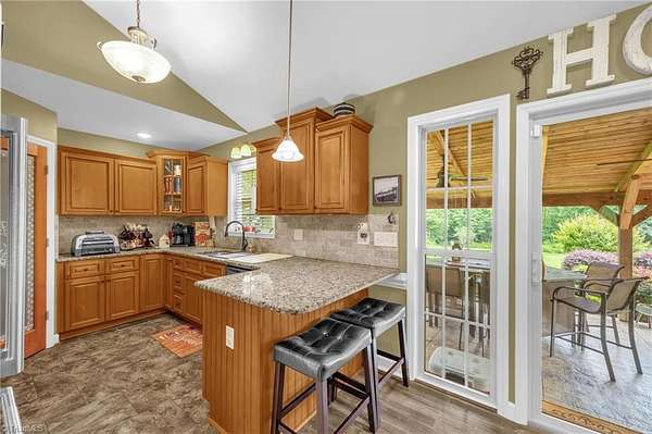33' x 30' detached garage has a kitchen, workshop space, a storage loft, power (with extra amps for welding), and water. Additional carport for car enthusiasts. Encapsulated crawlspace, leaf guards on the gutters, and 2 remaining storage sheds, one of which is wired.