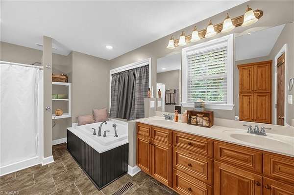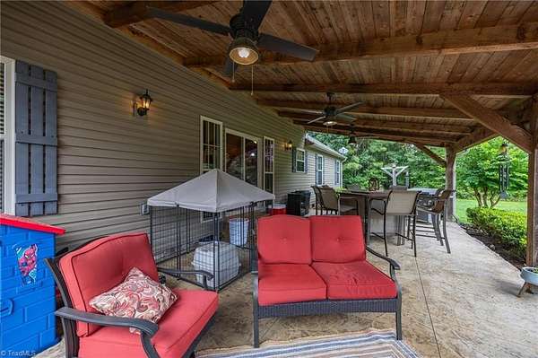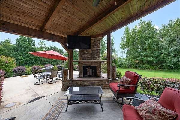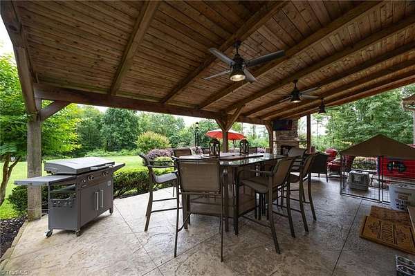 The 2 car garage has been converted into a finished den/game rm, complete w/ heating, cooling, insulated doors, and finished floors. This space is not included in the home's square footage but can be easily converted back to a garage, as the doors and equipment remain. Outdoor living area has a covered back porch w/ fp and an additional patio area