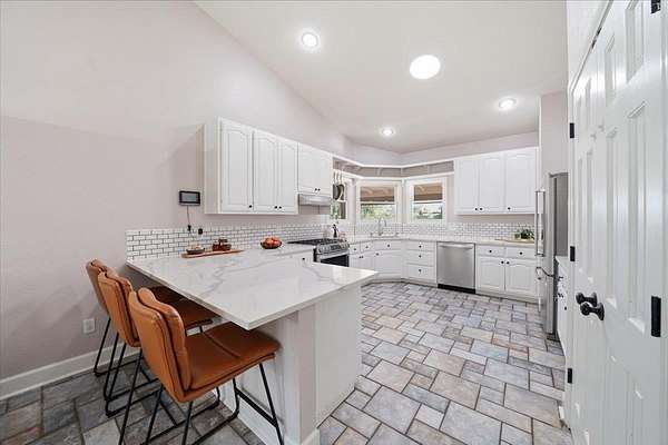 - Breakfast Bar, Ceiling Fan(s), Ceiling-High, Ceiling-Vaulted, Chandelier, Eat-In Kitchen, High Speed Internet, Pantry, Primary Bedroom On Main, Recessed Lighting, Walk-In Closet(s)