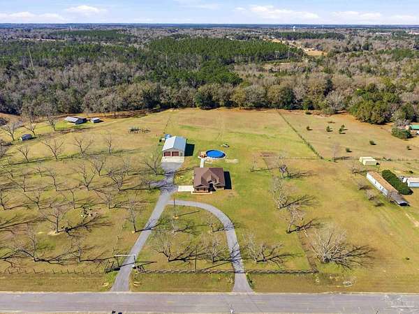 3.99 ACRES ~ CUSTOM BUILT HOME ~ 3 Bedrooms ~ 2 Baths ~ TILE Wood look flooring ~ Open Floorplan ~ Kitchen includes GRANITE countertops, STAINLESS appliances (including REFRIGERATOR), Center ISLAND, and Tons of CABINETS ~. Whole House GENERATOR ~ Completely FENCED Yard ~ Circular Driveway and extra parking pads ~ 40'x60' WORKSHOP with ELECTRICITY ~ Above Ground POOL complete with DECK ~ PECAN trees ~ Property backs up to Cottage Hill State Forest so NO back neighbors! ~ Watch the DEER play in the back yard! ~ Properties like this do not come on the market often! Call today for your personal tour!